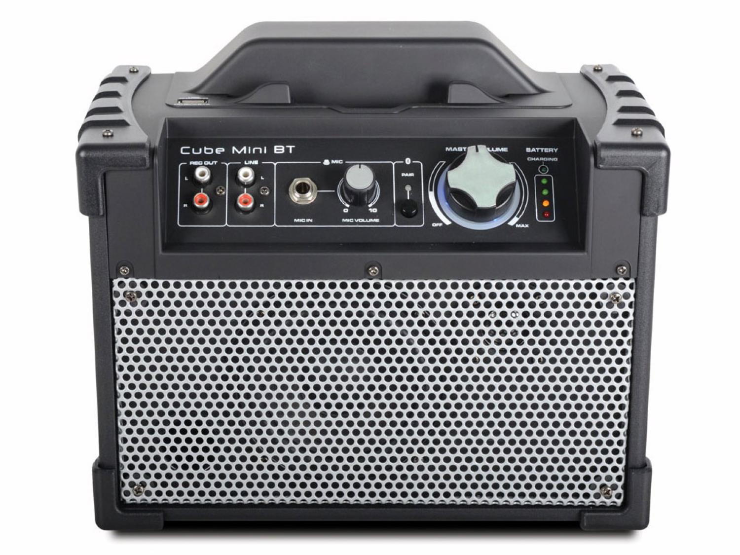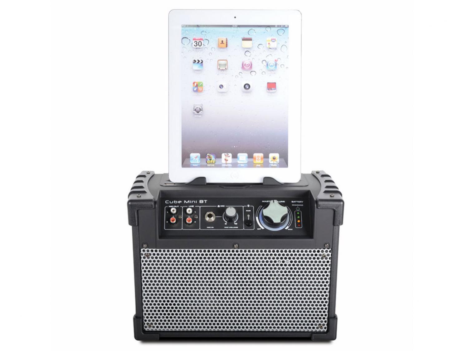 Il Cube Mini BT consente di ascoltare musica in streaming in modalità wireless da qualsiasi dispositivo Bluetooth, inclusi iPad, iPhone e dispositivi Android. E' incredibilmente compatto e dotato di altoparlanti a due vie di una elevata qualità, con woofer e tweeter, e quindi sentirete la vostra musica modo forte e chiaro. Un ingresso 1/4" permette di collegare microfoni e strumenti, mentre una porta USB permette di ricaricare dispositivi mobili quando Cube Mini BT è collegato all'alimentazione di rete. E' il piccolo sistema amplificato perfetto da portare in giro e può essere utilizzato in molti modi diversi, come fare annunci alle feste o mantenere la vostra abilità di chitarrista esercitandosi durante le vacanze. Cube Mini BT è un sistema all-in-one. Una base integrata permette di lasciare dispositivi iPad, iPhone o altri prorio in cima al Cube Mini BT per un facile accesso.