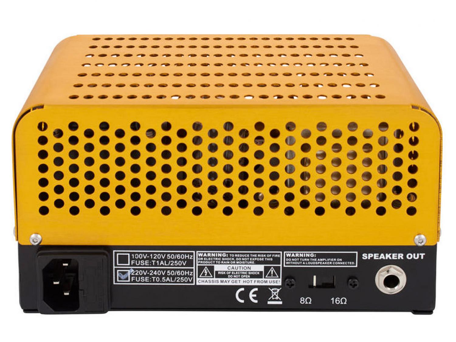 Mini Testata completamente valvolare dal suono caldo e avvolgente. Grazie agli switch Thin/Mellow e Bright/Normal, è possibile ottenere una grande varietà di suoni.