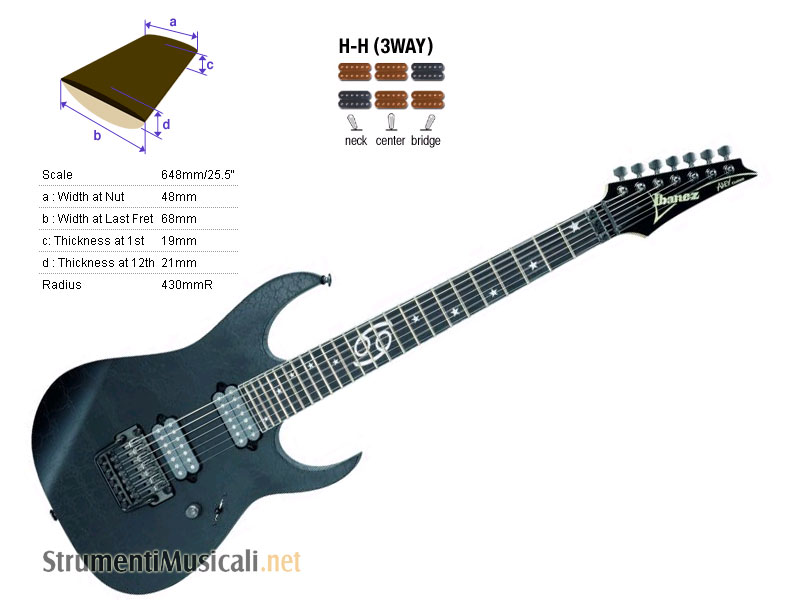 • Humbucker DiMarzio PAF 7 (manico) + humbucker DiMarzio PAF 7 (ponte)