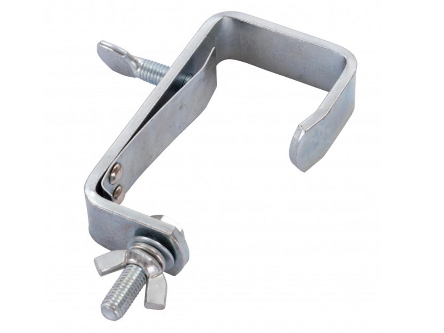 Gancio in acciaio zincato, adatto per tubi con diametri da 35 a 50 millimetri. Può sostenere un carico massimo di 35kg.