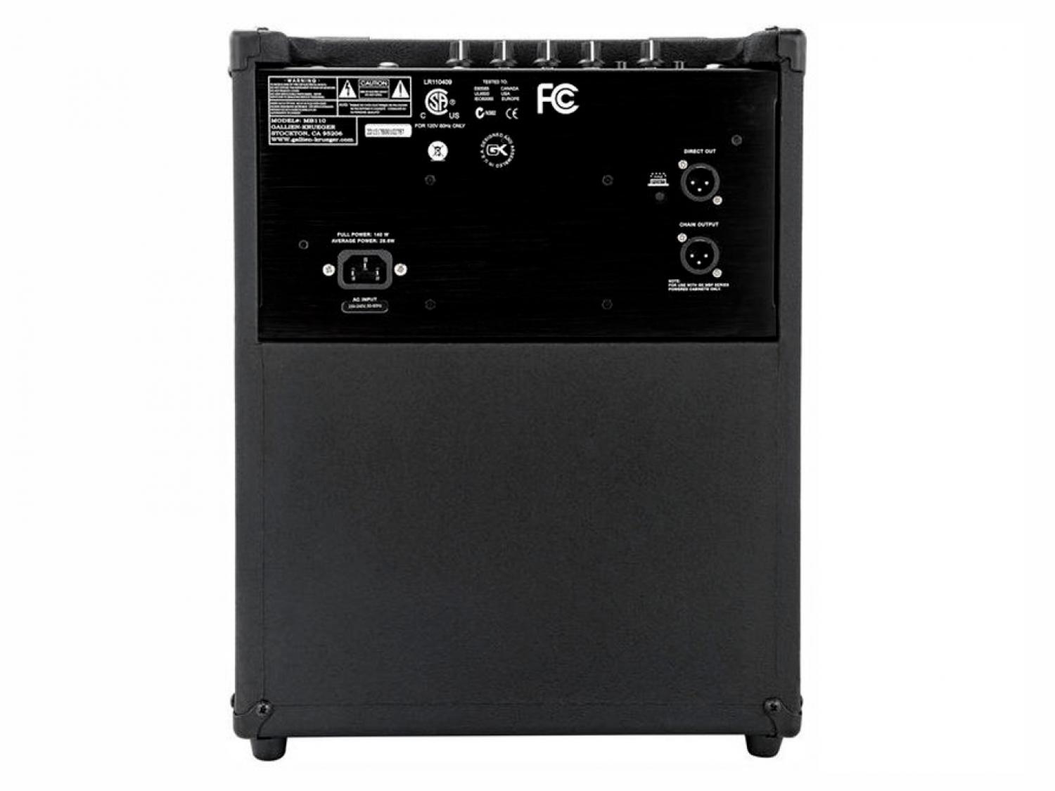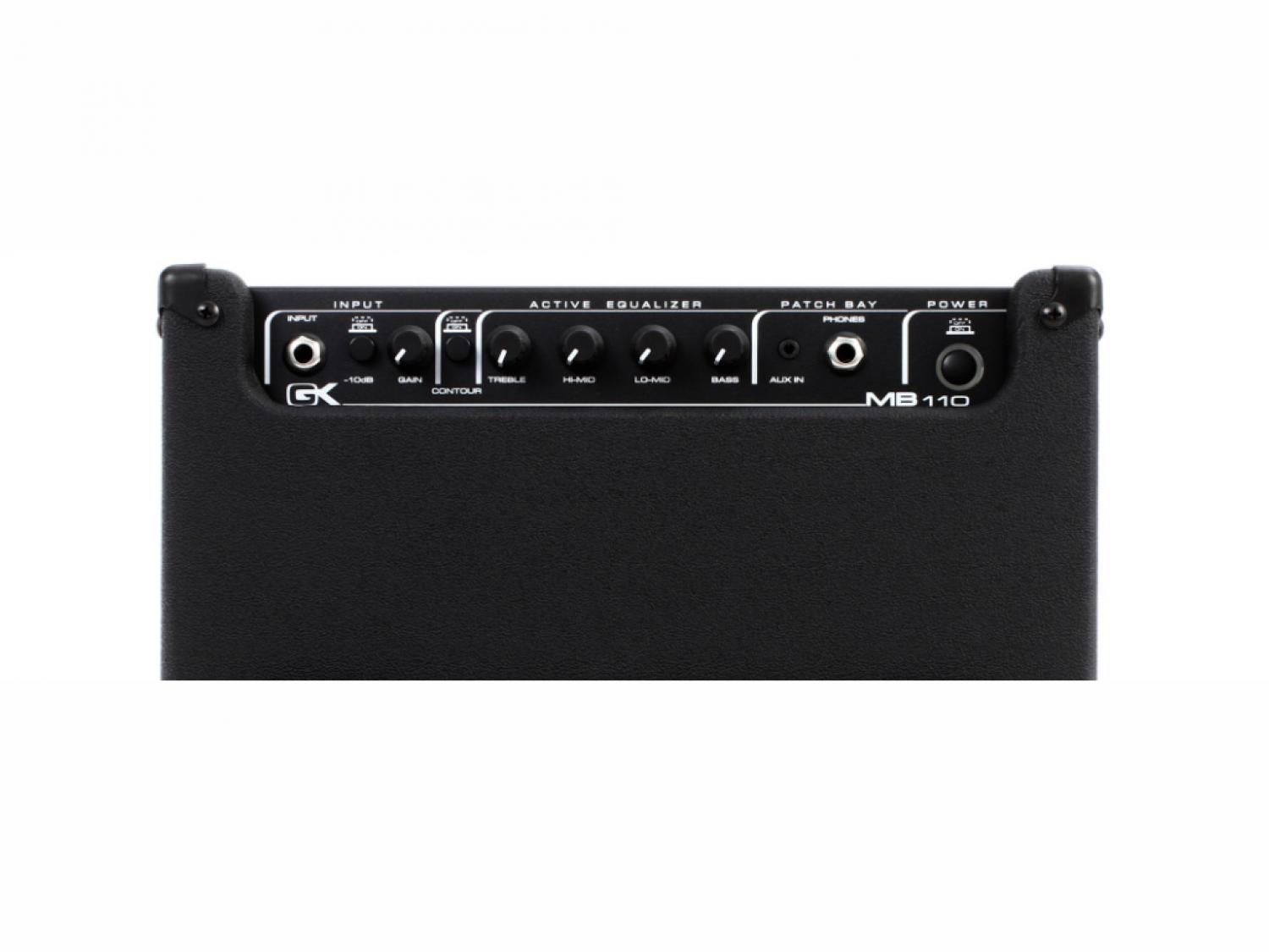 Il Gallien Krueger MB110 è un amplificatore per basso con un preamplficatore con circuiti di definizione del suono che alimenta un leggero amplificatore di potenza in Classe D. Il preamplificatore utilizza una sezione controllo del tono attiva a 4 bande con una funzione Contour preimpostata. Il singolo input da 1/4" accetta sia bassi passivi che attivi quando usato in combinazione con il pad -10dB. Un ingresso Aux 1/8" ed un jack cuffie consentono di esercitarsi in silenzio con un lettore MP3 o altre sorgenti audio. Un'uscita DI XLR è inclusa per la registrazione o il sound reinforcement così come per l'esclusiva "Output Chain" GK per pilotare la serie di Cabinet MBP per un espandibilità praticamente illimitata.