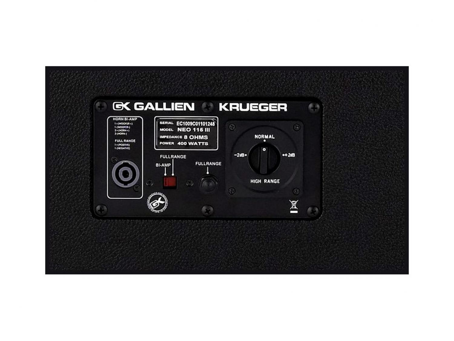 Se vuoi l'impatto viscerale che solo un woofer da 15" è in grado di fornire, il cabinet per basso Gallien-Krueger Neo 115-III offre la robustezza delle basse frequenze che stai cercando. GK ha incorporato l'innovativo sistema a tromba bi-amp nelle casse della Serie Neo, con conseguente incremento della definizione nelle alte e medie frequenze, con basse ricche ed incisive, ed il tutto racchiuso in un cabinet di soli 18kg. Il Neo 115-III presenta rinforzi speciali per eliminare le onde stazionarie, con un supporto strutturale per ridurre la risonanza del cabinet. Questo dà chiarezza e proiezione ai bassi. Una tromba di alta qualità offre medie e alte frequenze nitide ed è possibile far funzionare il sistema bi-amplificato o full-range.