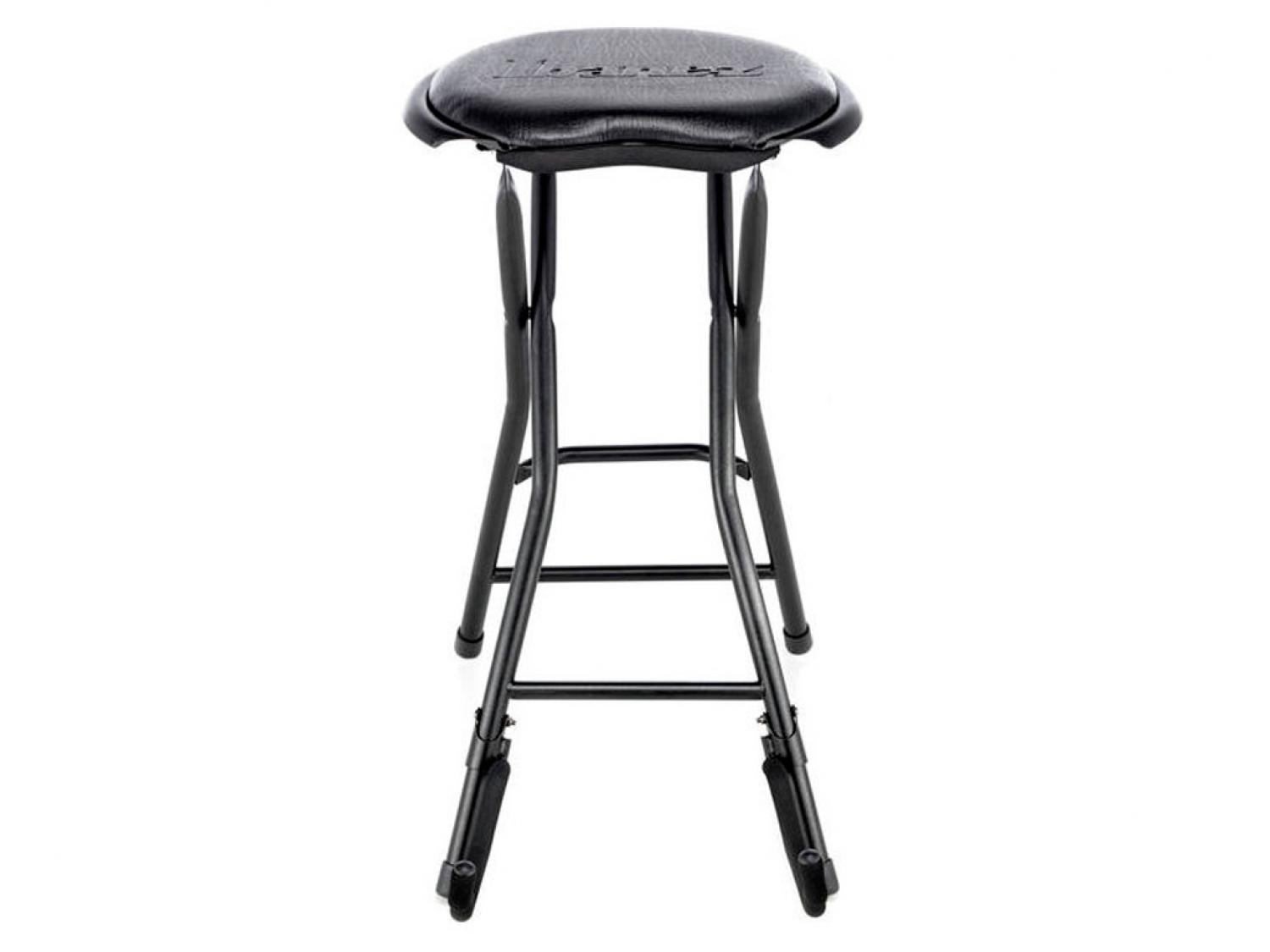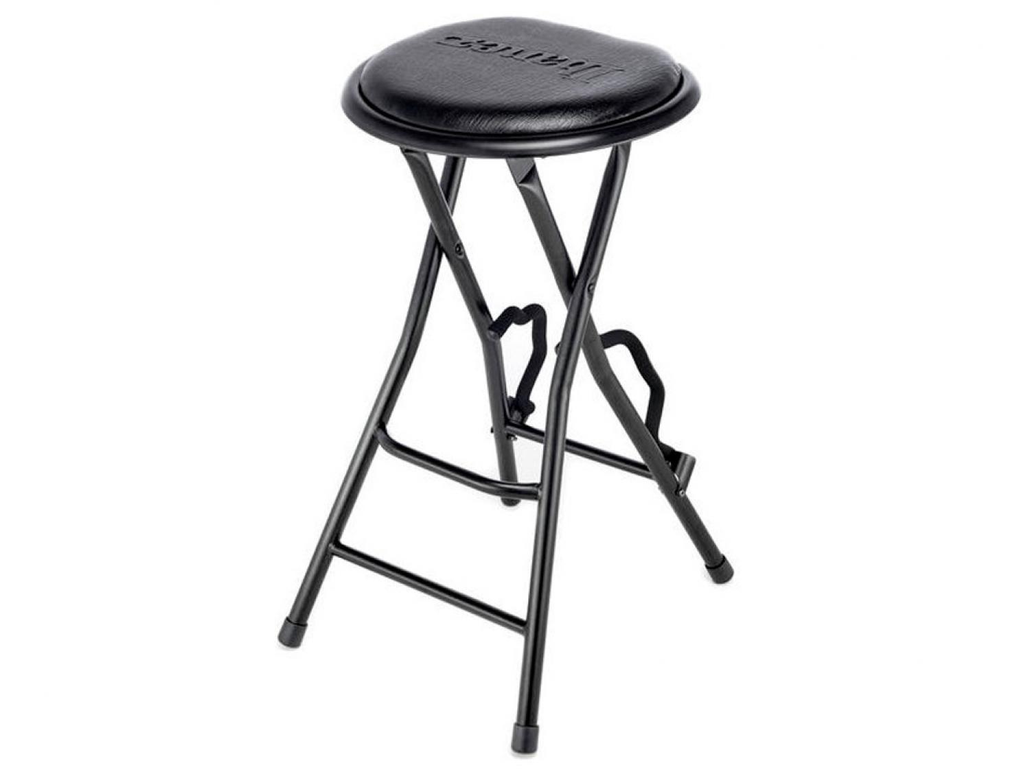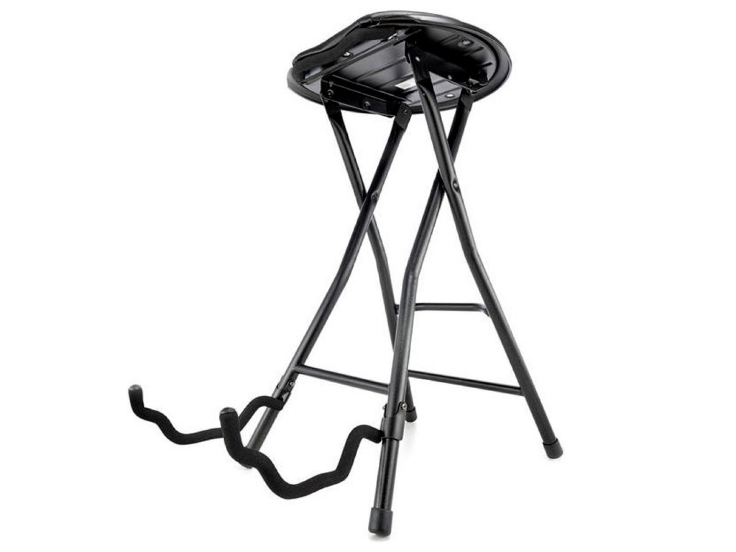 Sgabello per chitarra richiudibile. Dotato di sedile imbottito e supporto per chitarra richiudibile.