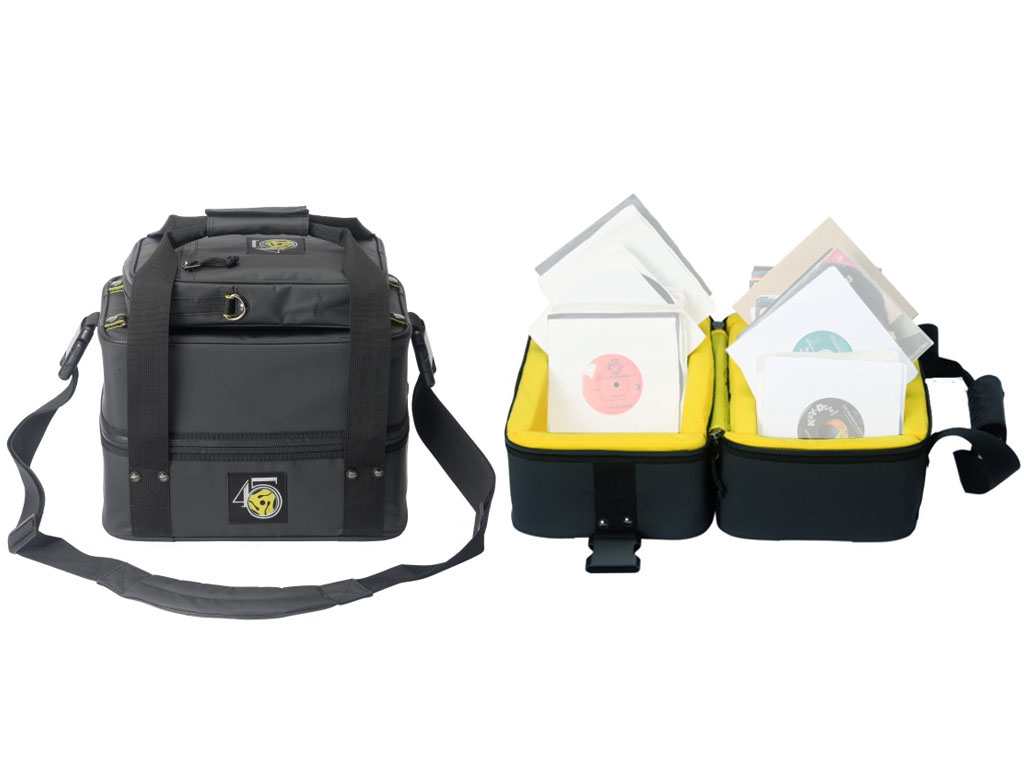 La Riot 45 Record Bag Large si rivolge alle esigenze dei DJ professionisti che usano vinili ed agli appassionati di 45 giri che hanno bisogno di portare i loro dischi da 7 pollici in modo sicuro, ma con comfort e stile. La borsa porta dischi semirigida ed imbottita è in grado di contenere fino a 150 dischi da 7" in vinile.