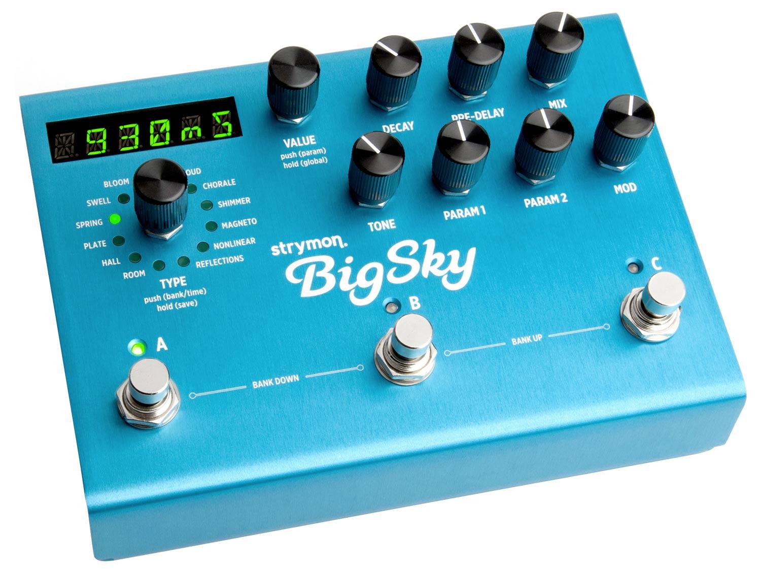 Creare una esperienza di riverbero naturale, bella e coinvolgente come BigSky ha richiesto enormi opere di ingegneria del suono e di immaginazione artistica. Utilizzando i fondamenti della scienza acustica come faro, Strymon ha accuratamente studiato e analizzato scientificamente la tecnologia di riverbero degli ultimi cinquant'anni. E'stata fedelmente catturata l'essenza di questi suoni classici, e bruciate le tappe per immaginare la visione Strymon dei riverberi del futuro.