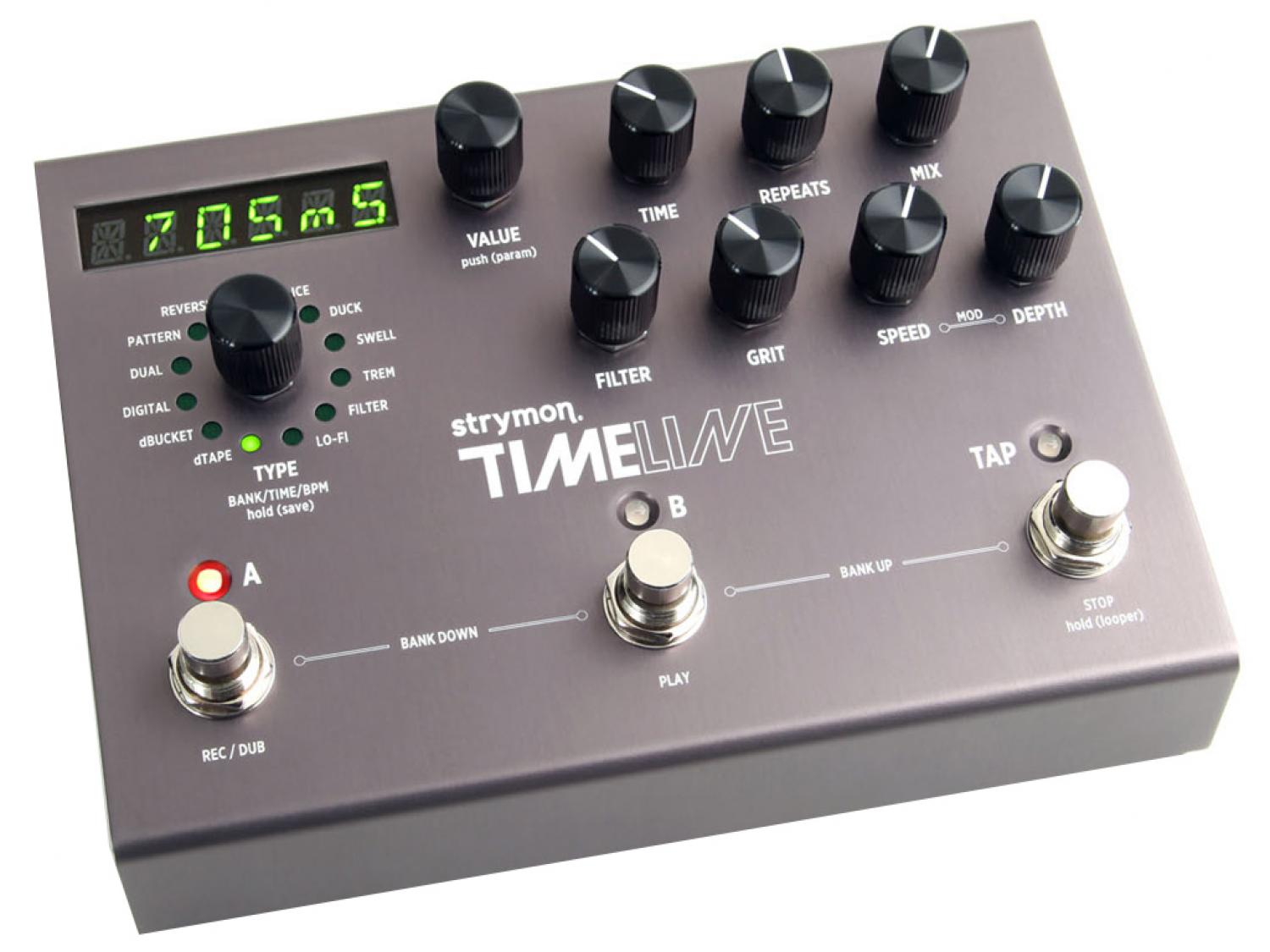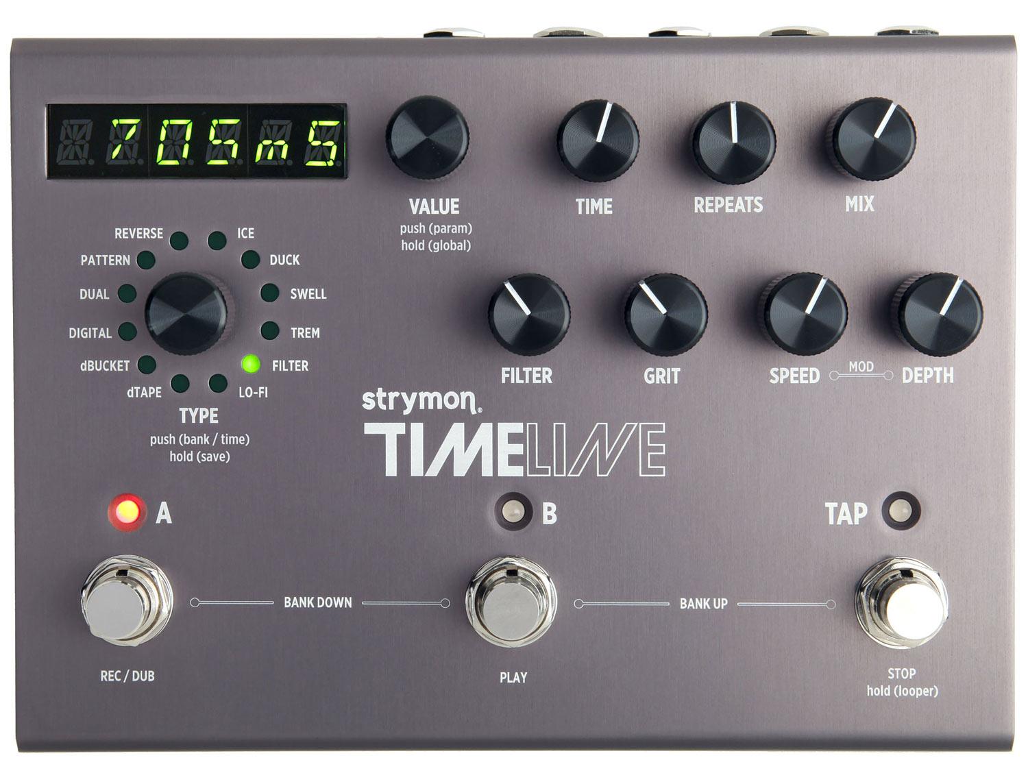 TimeLine fornisce dodici diverse macchine Delay, ognuna con un ampio controllo su carattere sonoro e atmosfera. Si passa da nitidi e chiari delay digitali di qualità professionale fino ai saturi e fluttuanti suoni di macchine Delay a nastro. Si possono ottenere calda e sfocate ripetizioni in stile analogico sino a delay scintillanti, frizzanti e cristallini. Si completa il tutto con una implementazione MIDI completa ed un looper stereo da 30 secondi. E' possibile salvare fino a 200 preset dei vostri suoni preferiti.