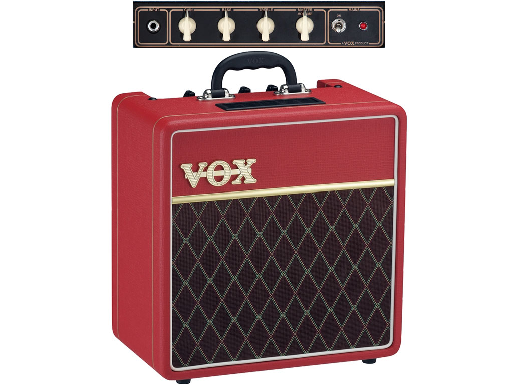 Il suono "Top Boost" corposo dell AC30 è oggetto di culto per i chitarristi di tutto il mondo da più di cinquant'anni: dal suono crunch travolgente al pulito squillante è il marchio di fabbrica della casa made in UK. L'AC4C1-RD dà ora la possibilità di avere tutto questo in un amplificatore combo compatto. I controlli Gain, Bass e Treble con il controllo Master Volume rendono semplice ricreare il suono storico. Interessante non solo per le qualità sonore, l'AC4C1-RD si fa notare anche per l'aspetto accattivante con una livrea British Garnet Red. Completa il tutto la maniglia vecchio stile in bakelite. Spingendosi ai vertici dunque per l'accattivante design, il VOX AC4C1-RD offre in maniera semplice la possibilità a tutti di avere il suono leggendario Top Boost dell'AC30.