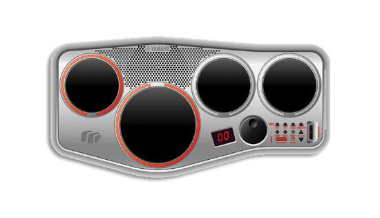 Il dispositivo è dotato di 100 brani incorporati. I quattro pad assegnabili, ognuno con sensibilità regolabile, possono essere suonati sia con le mani sia con le bacchette.