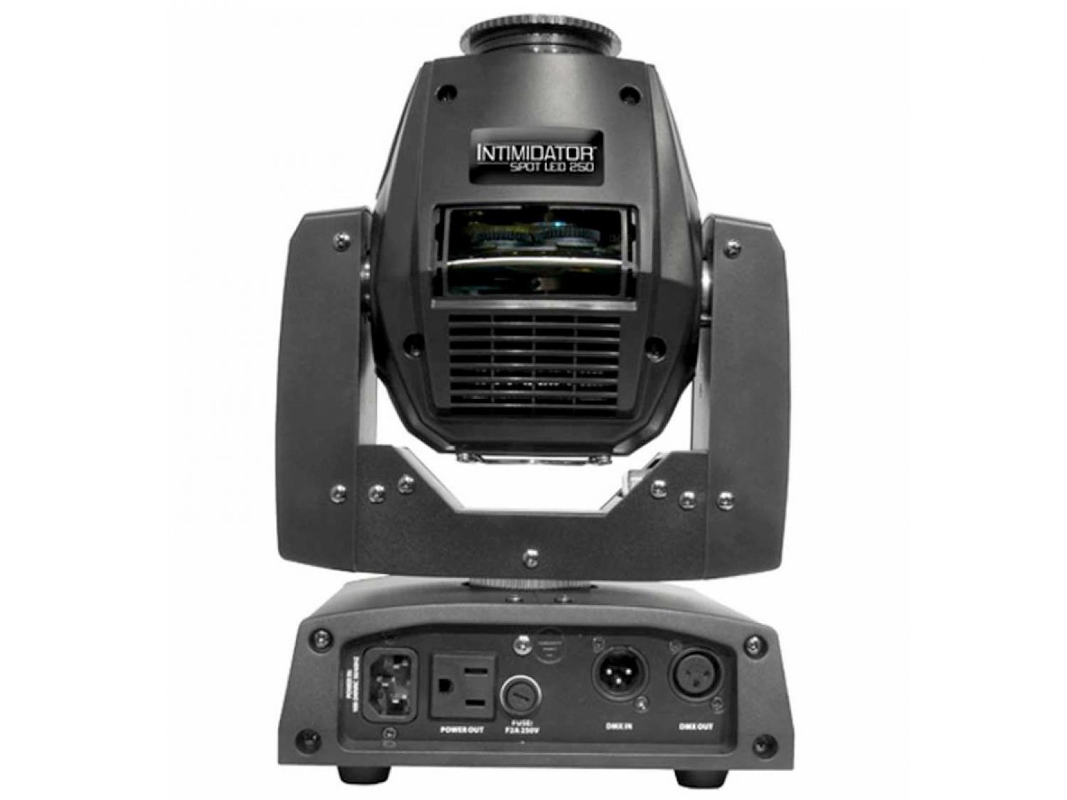 Intimidator Spot LED 250 è una testa mobile LED da 50 Watt con prisma a tre facce, per separare il raggio di luce emesso al fine di estendere l'area coperta, che offre un rapido accesso per la sostituzione dei gobo e un dimmer elettronico per una transizione estremamente fluida. Supporta la funzionalità Master/Slave, dispone di program sincronizzabili in automatico alla musica, macro preset per movimenti orizzontali e verticali, dissolvenze e di reset individuali per pan/tilt, colore, gobo e prisma. Per il trasporto si consiglia la borsa CHS-40 VIP Gear Bag.