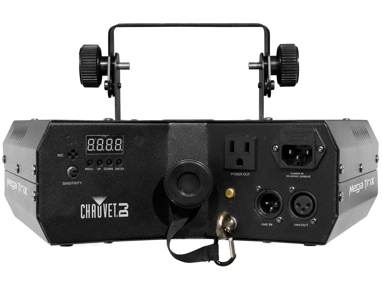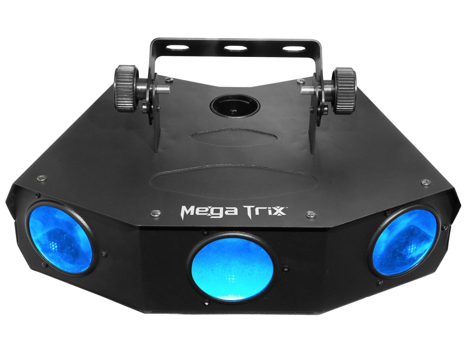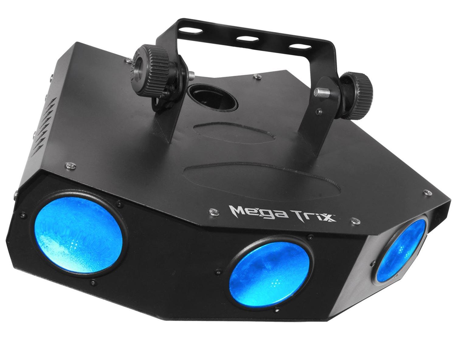 Fornito di 192 LED RGBW Mega Trix è una luce dal peso contenuto utile alla generazione di effetti DMX per la proiezione di animazioni a mezz'aria, dai raggi sottili ai fasci luminosi utili a coprire aree di dimensioni medio grandi, grazie alla sua ottica estremamente precisa. Un sistema di montaggio innovativo ne permette l'inserimento rapido su treppiedi e sui classici stand per diffusori, senza dover ricorrere a morsetti aggiuntivi. Il prodotto include vari program integrati per la riproduzione di sequenze ed effetti luce, attivabili e sincronizzabili alla velocità della musica, gestibili via DMX, oppure direttamente da pannello. Si trasporta all'interno della borsa opzionale CHS-40 (non inclusa).
