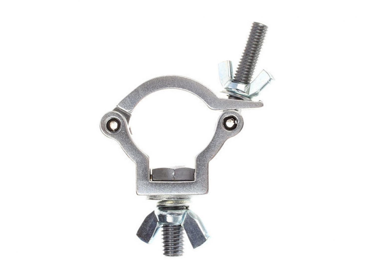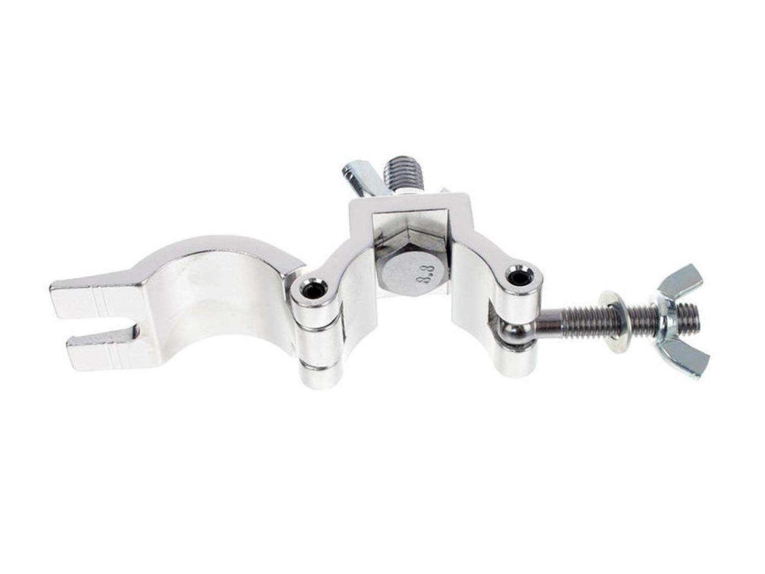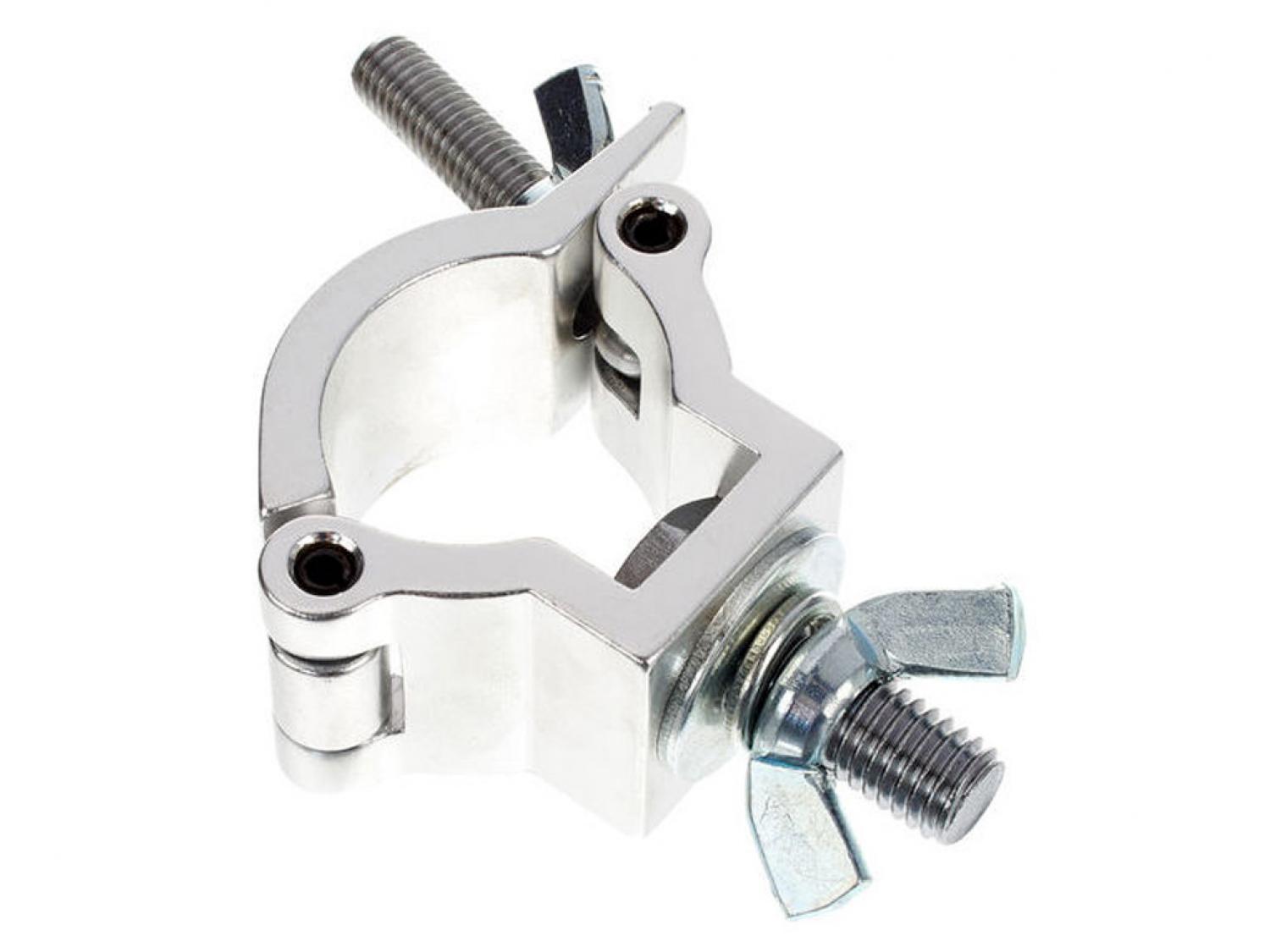 Robusto morsetto in Alluminio per il fissaggio di componenti, luci ed effetti, alle americane Trusst Arch e Goal Post. Il morsetto avvolge completamente tubolari da 35mm di diametro, supporta un massimo di 74kg e per la posa in opera impiega un bullone M10.