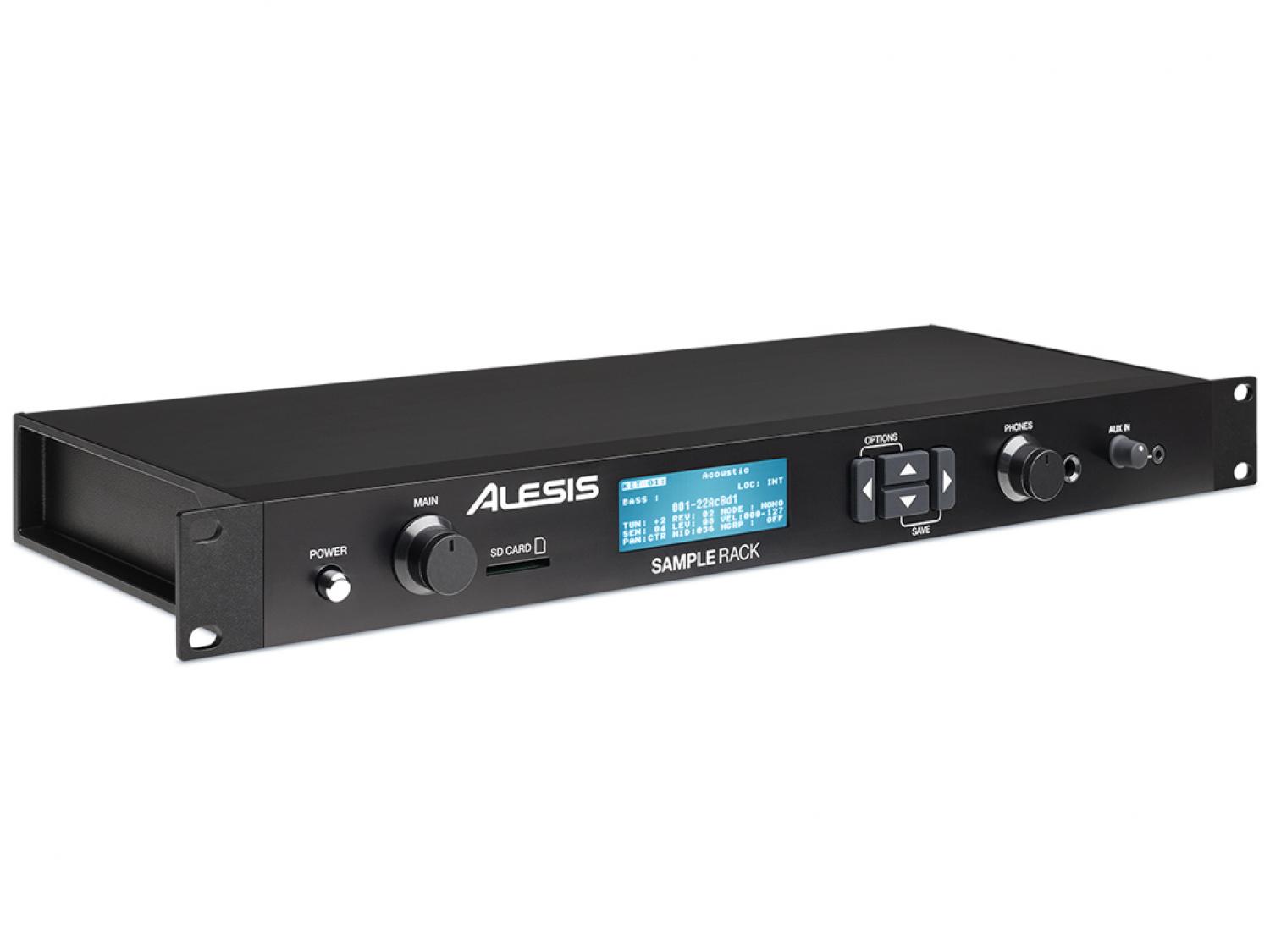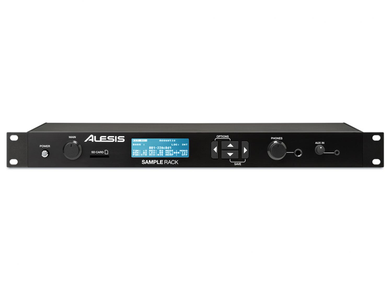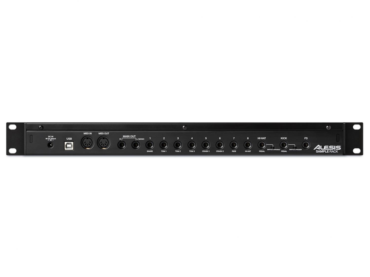 L'Alesis Sample Rack mette a rack il "motore" sonoro del Percussion Pad, consentendone l'utilizzo e l'integrazione in qualsiasi set percussivo o di batteria. Oltre ai 10 kit ed agli oltre 200 suoni integrati, potrai caricare via SD card i sample audio che preferisci. Il rack ingombra un'unità da 19" e fornisce 8 ingressi trigger più le connessioni kick e hi-hat. Le connessioni audio sono Stereo Out (L/R) su connettori jack da 1/4", uscita cuffia su jack TRS da 1/4" e ingresso audio ausiliare su mini jack TRS da 1/8".Oltre alla porta USB sono presenti connessioni MIDI In/Out in formato DIN.