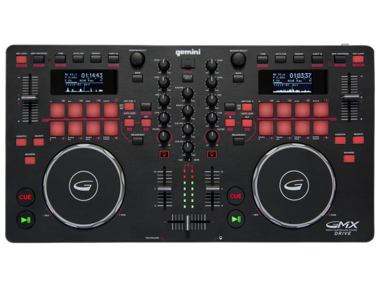 Il GMX DRIVE è un controller multimediale multi-formato per il DJ che vuole la possibilità di riprodurre tutti i tipi di musica digitale. I DJ possono riprodurre i brani da una singola unità USB, da una delle due unità CD slot-in, o da un computer portatile come un controller MIDI software versatile per Virtual DJ o altra applicazione host. Gli 8 grandi performance Pad per ciascun deck e le jog-wheel meccaniche di nuova concezione e sensibile al tocco, garantiscono un controllo ispirato e intuitivo, mentre il top lucido spazzolato, i display ad alto contrasto, ed i tasti funzione retroilluminati danno al GMX un aspetto professionale.