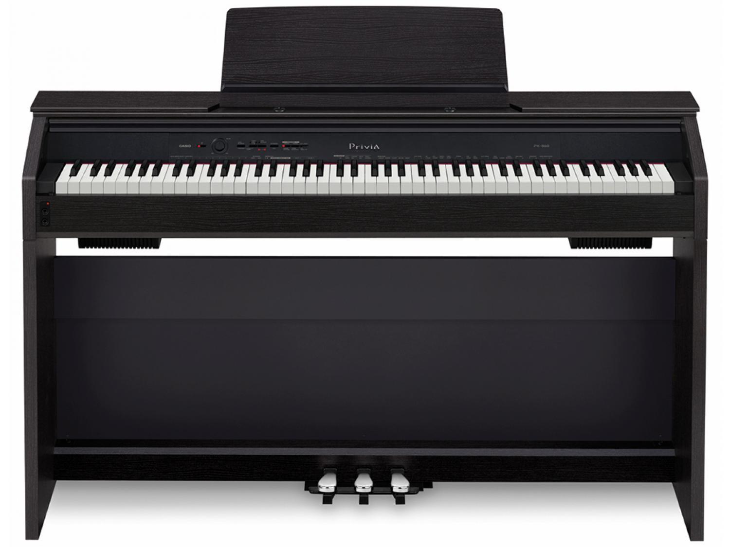 Il suono perfetto in un pianoforte compatto. Con il modello top PRIVIA vedrete i risultati della tecnologia AIR, che mostra come questi strumenti dal design compatto possano sviluppare completamente il loro potenziale sonoro. Tutti i nuovi elementi nei nuovi timbri sonori del PX-860 sono completamente convincenti quando il coperchio del PRIVIA è sollevato. Potrete apprezzare le più piccole sfumature del suono dato che può trasformare il salotto in una sala da concerto. Utilizzando la nuova funzione "Concert-Play", si può suonare la parte di pianoforte con accompagnamento.