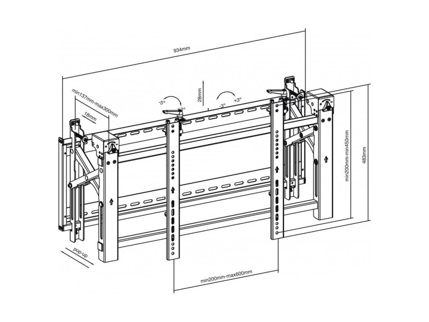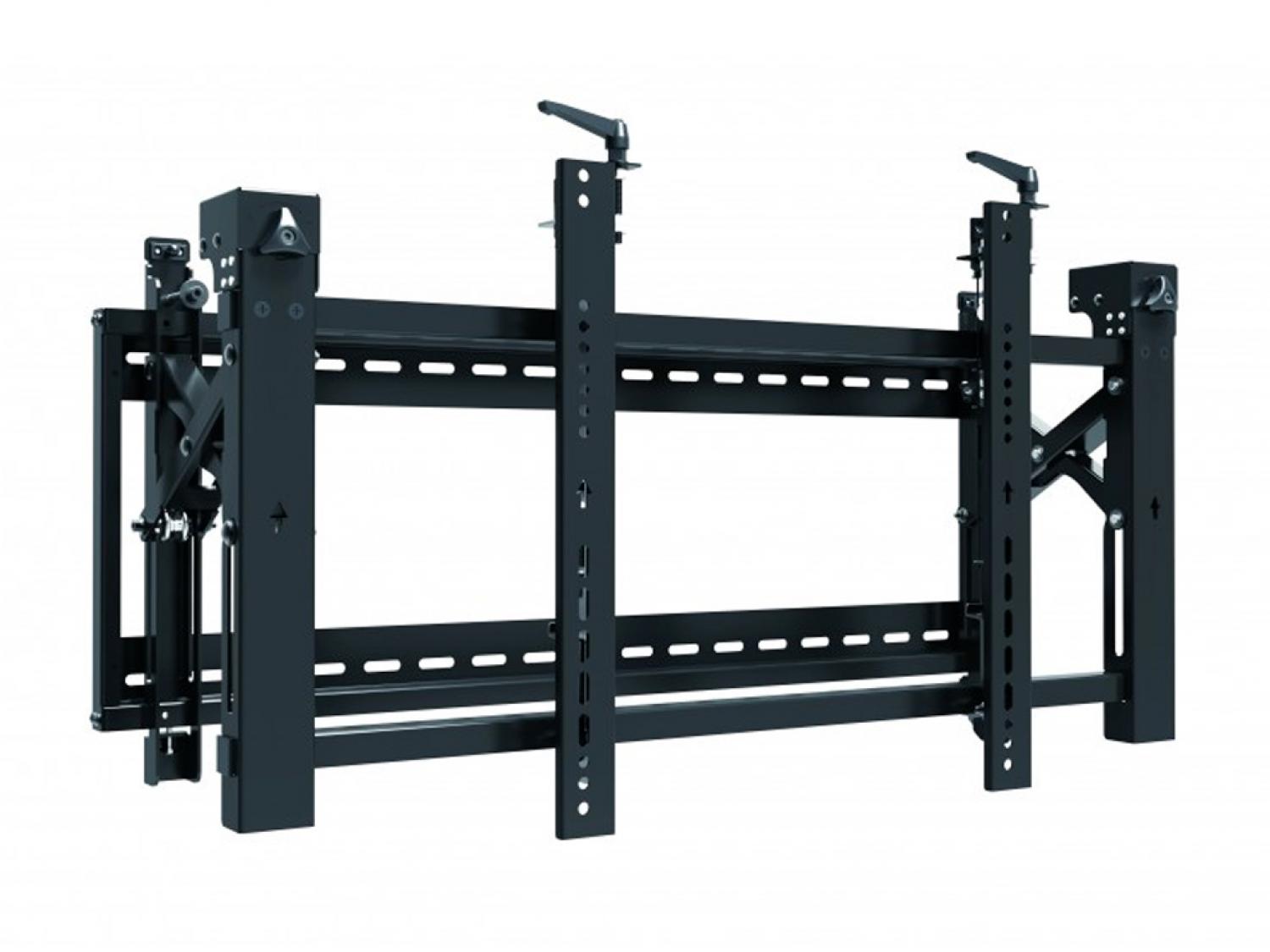Supporto professionale per montaggio a parete di video-wall progettato per offrire il massimo in termini di versatilità ed una compatibilità universale. Dotato di un pratico sistema "pop-up" per un facile montaggio ed accesso agli apparecchi e possibilità di infinite regolazioni per un montaggio ottimale. Portata massima fino a 70kg di peso ed applicazione di pannelli con range da 54" a 70" (VESA 600 x 400 max). E' la soluzione ideale per i display pubblici e commerciali con design antifurto (è necessario un lucchetto).