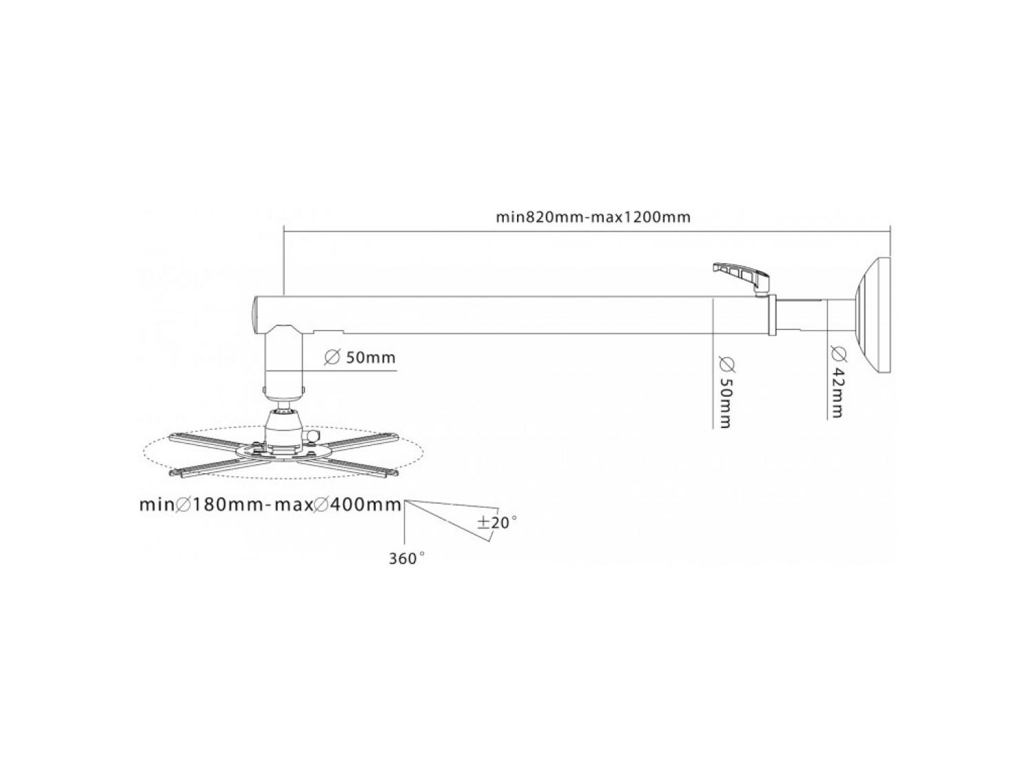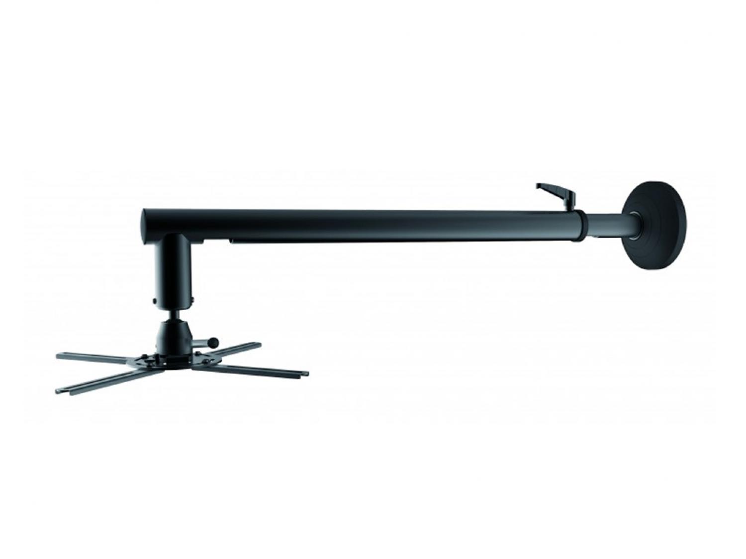 Robusto supporto per video proiettore da parete. Una nova linea di supporti professionali, universali, per videoproiettori con predisposizione per montaggio a soffitto, anche con superficie inclinata (regolazione fino a 90°), oppure a parete, per offrire massima versatilità e compatibilità d'uso. Tutti i prodotti offrono un range di regolazione dell'inclinazione dell'apparato da 0 fino a 20° ed una rotazione di 360° sull'asse principale. La piastra di aggancio del videoproiettore può coprire una superficie da 180 a 400mm di diametro. Dotati di sistema integrato per l'organizzazione dei cavi. Possono essere utilizzati per proiettori con un peso massimo fino a 26kg.