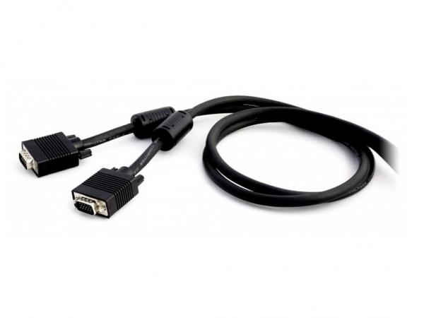 Cavo professionale VGA con connessioni D-SUB 15 poli (con ferrite) principalmente utilizzato per monitor, flat panel e proiettori. Trasporta il segnale video RGBHV con DDC2 digital clock e data. Dotato di nuclei in ferrite anti disturbo per una trasmissione video ottimale e per una qualità superiore del segnale. Le connessioni sono in metallo nichelato e sono resistenti alla corrosione. Lo schermo è realizzato in polietilene resistente alle deformazioni e la guaina esterna è in PVC ad alta resistenza.