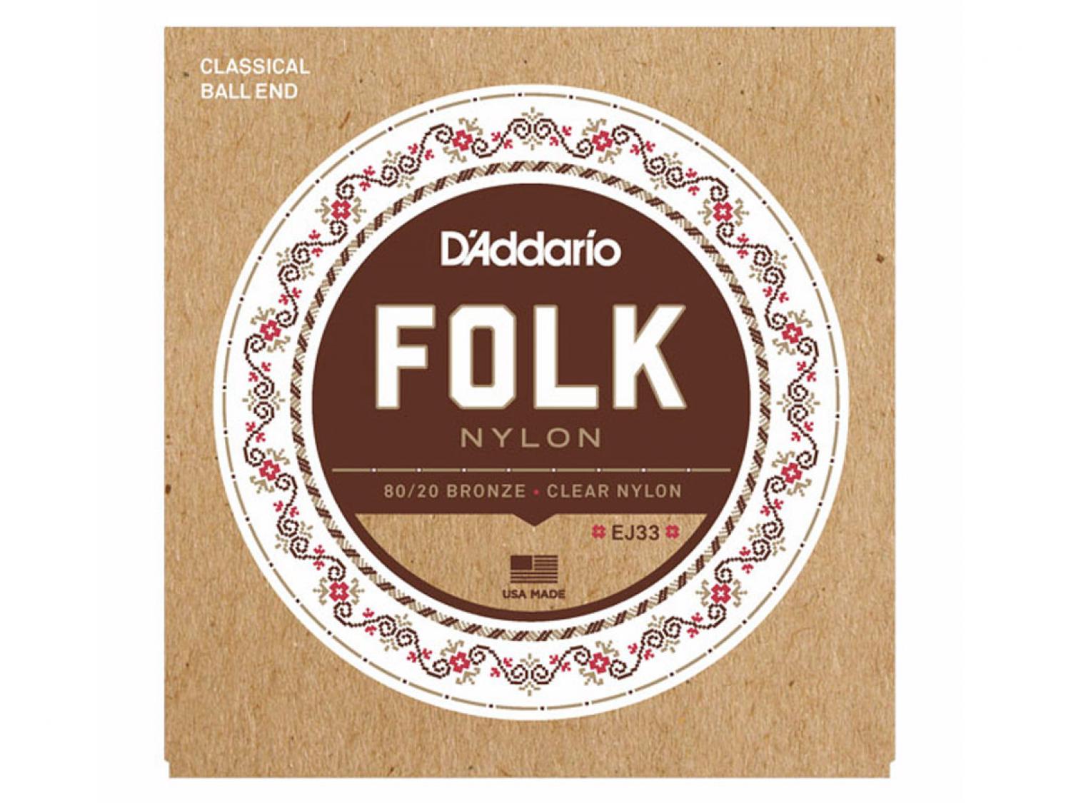 Le corde D'Addario EJ33 sono dotate di bassi in bronzo 80/20, corde alte in nylon e ball-end all'estremità di ogni corda per adattarsi ad una una grande varietà di chitarre. Sono realizzate con nylon di alta qualità e ball-end su ogni corda per facilitare l'installazione su chitarre classiche o acustiche con corde in acciaio.