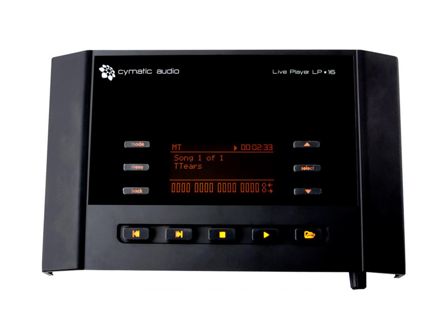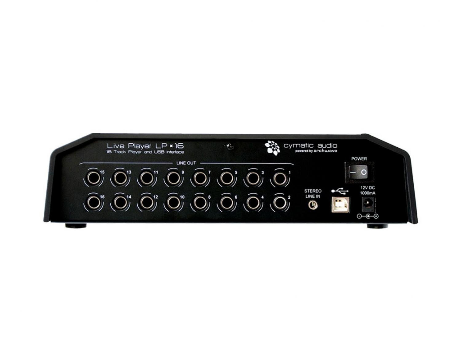 Il Cymatic Audio Live Player LP-16 è il più facile da utilizzare direttamente da un sistema di riproduzione USB, poichè offre un player audio a 16 tracce, player di file MIDI standard, footswitch di avvio e arresto ed un software Playlist Editor dedicato. L'LP-16 funziona come lettore multitraccia dedicato per esibizioni dal vivo, risparmiando agli utenti i problemi di utilizzo di un computer portatile e di un interfaccia audio in un ambiente live. E' perfetto per basi, sound check virtuali, triggering di sintetizzatori o campionatori, pilotare giochi di luce e controllare i dispositivi. Il comodo Play List Editor (solo per Windows) consente di assegnare facilmente un canale output per i file wave, scalette, pausa, riproduzione continua o controllo con footswitch. Modificare la scaletta al volo dal browser dell'LP-16 per adattarsi agilmente alle richieste della folla. Utilizzato in connessione con un PC, Mac o iPad. l'LP-16 serve anche da interfaccia audio USB 18-Output / 2-input. Con un gran numero di uscite, le singole tracce di una sessione DAW multi-traccia possono essere facilmente collegate ai singoli ingressi di uno studio mixer analogico, ideale per summing analogico e mixaggio "out-of-the-box", conferendo un classico sapore analogico alla prossima sessione di mixaggio.