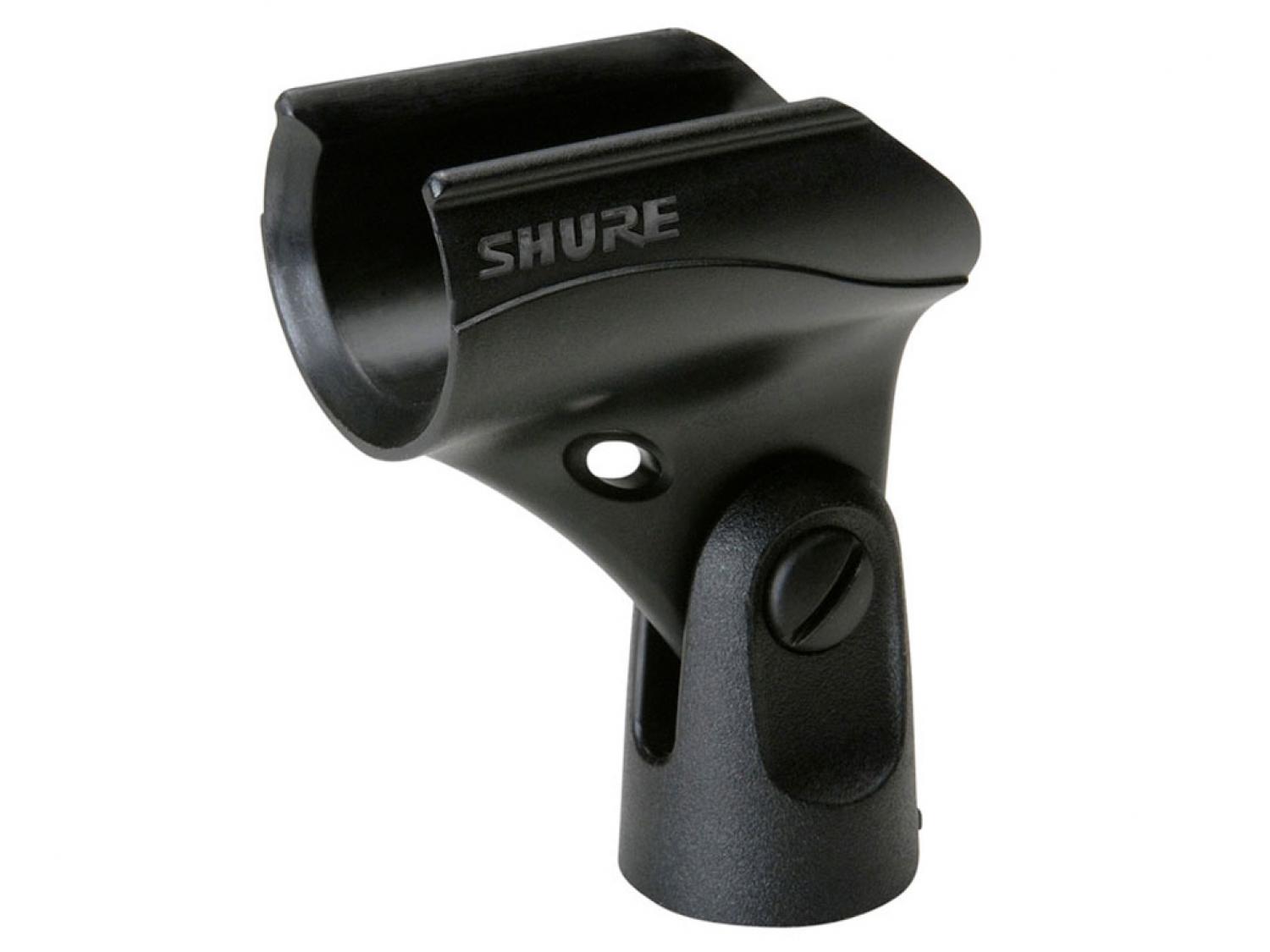 La clip per microfono Shure A25D fissa il tuo microfono palmare al supporto in modo sicuro, e fornisce una facile regolazione dell'angolo di inclinazione. Compatibile con i microfoni Shure SM58, SM57, SM87A, Beta 87A, Beta 87C e con tutti gli altri microfoni con impugnatura da 3/4".