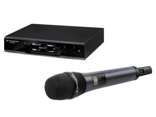 Il Vocal-Set evolution wireless D1 con la leggendaria caspula evolution E835 Cardioide e selettore mute per l'uso dal vivo sul palco è un sistema di trasmissione audio digitale che non scende a compromessi quando si tratta di affidabilità, qualità del suono o facilità di utilizzo. Il Sennheiser ew D1 è il numero uno per ogni concerto ed evento dal vivo quando è necessario fare affidamento sulla genialità pura. E' possibile utilizzare fino a 15 linee di uscita in parallelo e regolare in modo indipendente la sensibilità di ogni trasmissione.