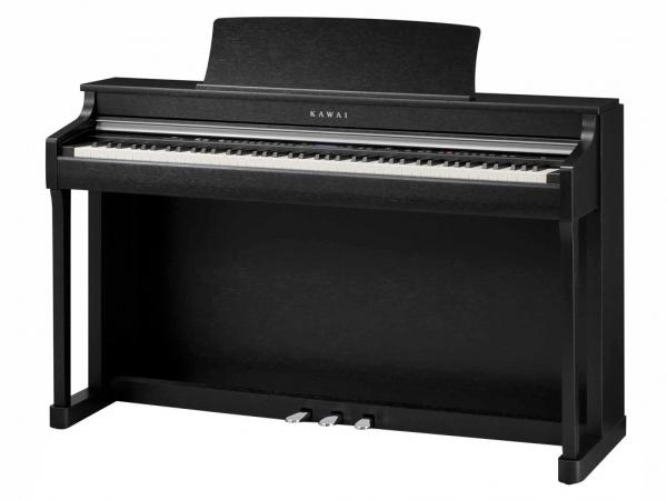 Il piano digitale Kawai CN35 è un fulgido esempio delle superba qualità dei pianoforti digitali che sono oggi sul mercato. Anche i più esigenti pianisti saranno impressionati dalla risposta reattiva della tastiera pesata Responsive Hammer III con simulazione left-off. Il sistema di azione di questa tastiera deriva direttamente da quello di un pianoforte a coda di alta qualità. La superficie dei tasti è in un materiale molto simile all'avorio per un sensazione Ivory Touch, mentre la simulazione left-off ricrea la sottile sensazione che si prova quando si suonano dolcemente i tasti di un pianoforte. Il sistema a 3 sensori garantisce che la dinamica venga inviata fedelmente al motore sonoro che genera il sono del pianoforte. I suoni sono campionati dalla superba gamma di pianoforti a coda Kawai, il che significa che il suono che si sente quando si inizia a suonare il CN35 è indistinguibile da quella di un pianoforte a coda reale, soprattutto grazie al sistema di proiezione a 4 altoparlanti. Il Kawai CN35 è dotato di oltre 300 suoni di ottima qualità e tutti possono essere utilizzati in modalità Dual, Split e 4 mani.