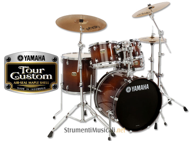 Tutte le batterie in legno Yamaha hanno un particolare in comune. I nostri artigiani creano ogni fusto utilizzando il nostro sistema esclusivo Air Seal System sin dal 1967. Ogni due o tre strati, lo strato principale viene tagliato in lunghezza in modo che le estremità abbiano una sezione diagonale. La giunzione diagonale del fusto fa in modo che gli strati non si separino e non è quindi necessario colmare i vuoti con particolari sostanze di riempimento. Agli strati viene applicata la colla e vengono messi in forma a mano, uno alla volta. L'artigiano quindi inserisce un cuscinetto d'aria e lo gonfia mantenendo bloccato il fusto con una pressione che raggiunge circa 360 gradi. Questo processo dà vita ad un fusto resistente che mantiene la rotondità per molti anni. I fusti delle batterie Tour Custom sono in acero al 100%. Le casse sono realizzate con 7 strati da 7 mm e sono caratterizzate da un suono caldo e profondo; i tom sono costituiti da 6 strati da 6 mm e si contraddistinguono per il loro calore, per l'ottima risonanza e per la vasta gamma di coloriture. I rullanti in legno producono sonorità molto corpose ed articolate a tutti i livelli di dinamiche. Le batterie Tour Custom sono disponibili nelle dimensioni universali Yamaha. Ciò conferisce alle batterie una versatilità che le rende adatte a qualsiasi performance musicale. Le casse hanno un'ottima risposta sui bassi, i tom garantiscono una notevole potenza e allo stesso tempo un ottimo sustain. I rullanti in legno 14x6 sono caratterizzati da una vasta gamma di coloriture e da una grande sensibilità che li rende adatti per ogni utilizzo, a casa, in strada, nei concerti e nelle performance itineranti.