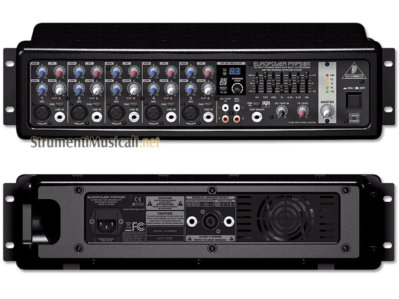 The PMP518M powered mixer delivers more power, better sound at less weight! The PMP518M mixer delivers 180 Watts of massive power and incredible performance through new-generation amplifier technology, crystal-clear sound plus an ultra-compact and lightweight design. The 24-bit stereo FX processor, IMP mic preamps and more round off this impressive package of power features.