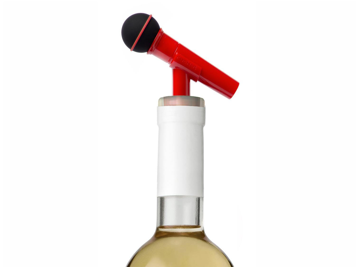 TAPPO PER BOTTIGLIA CON IMPUGNATURA A FORMA DI MICROFONO ROSSO