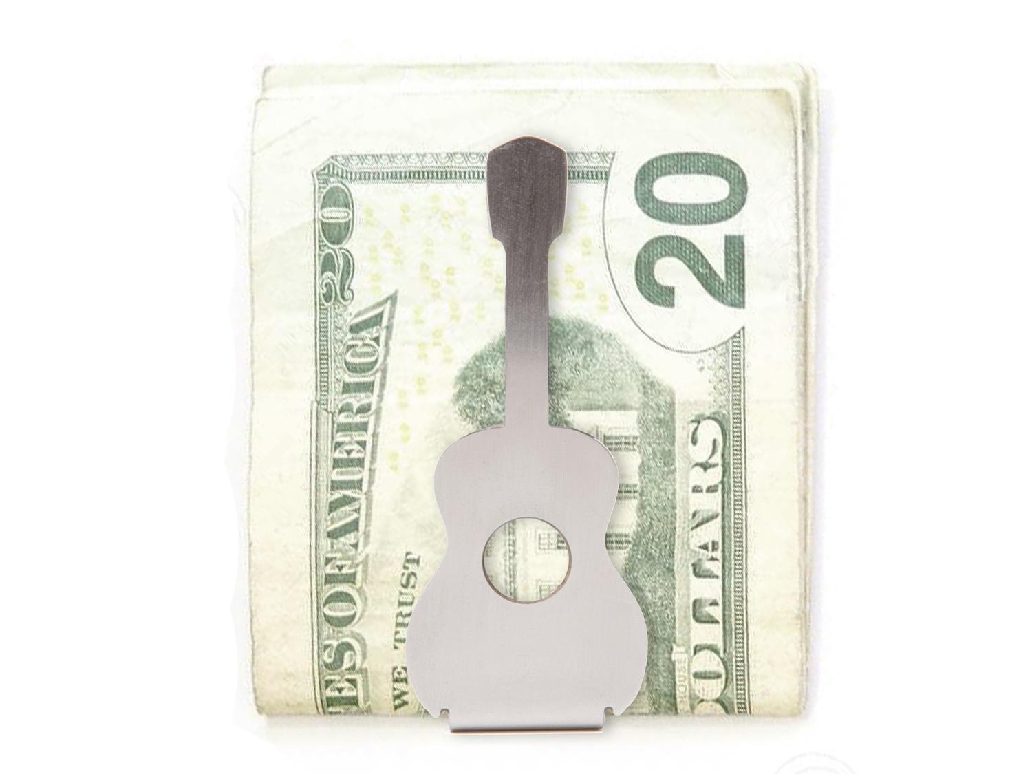 FERMA BANCONOTE IN ACCIAIO SPAZZOLATO A FORMA DI CHITARRA CLASSICA