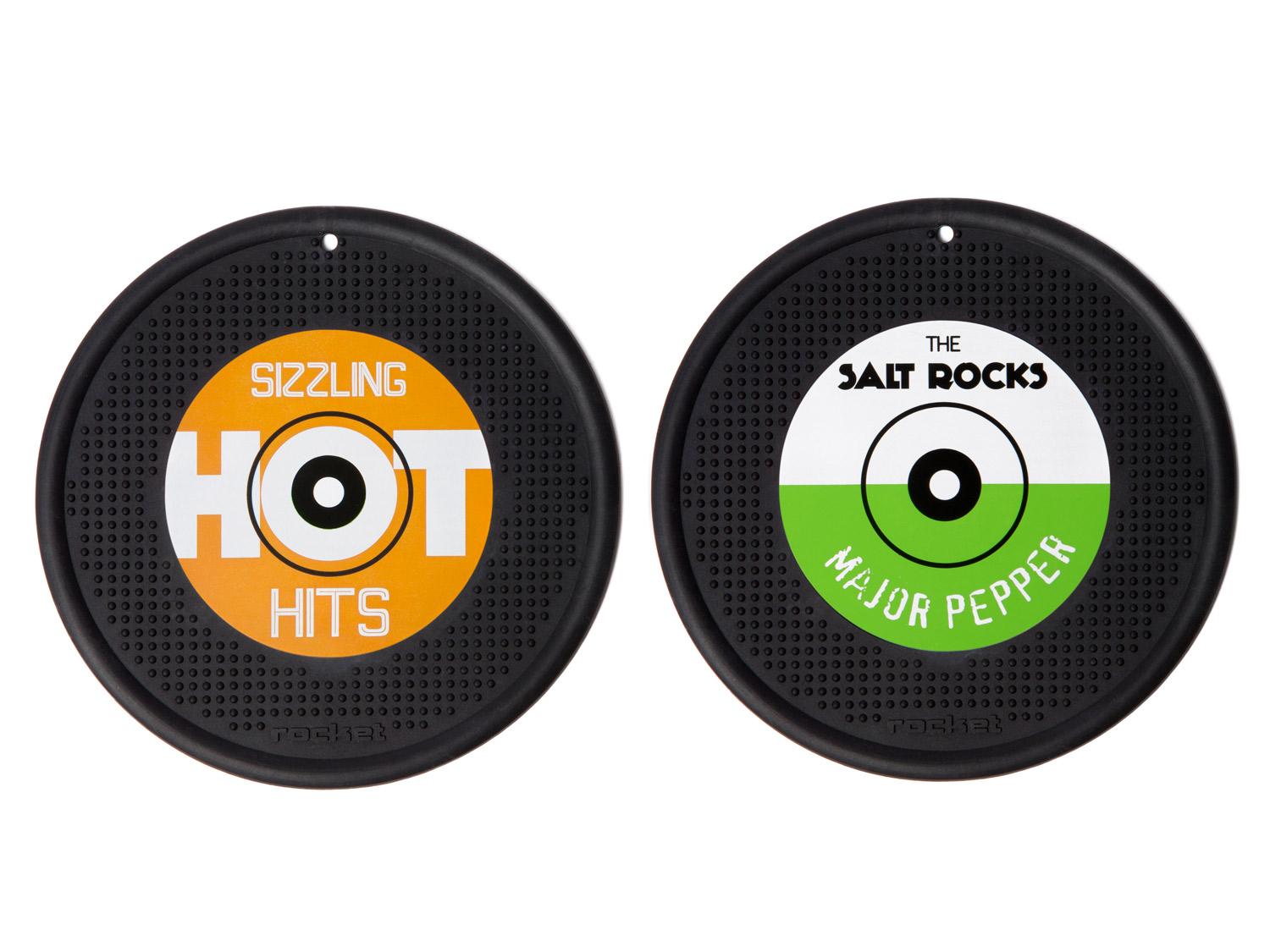 COPPIA DI PRESINE IN SILICONE A FORMA DI DISCO IN VINILE - ARANCIONE/VERDE