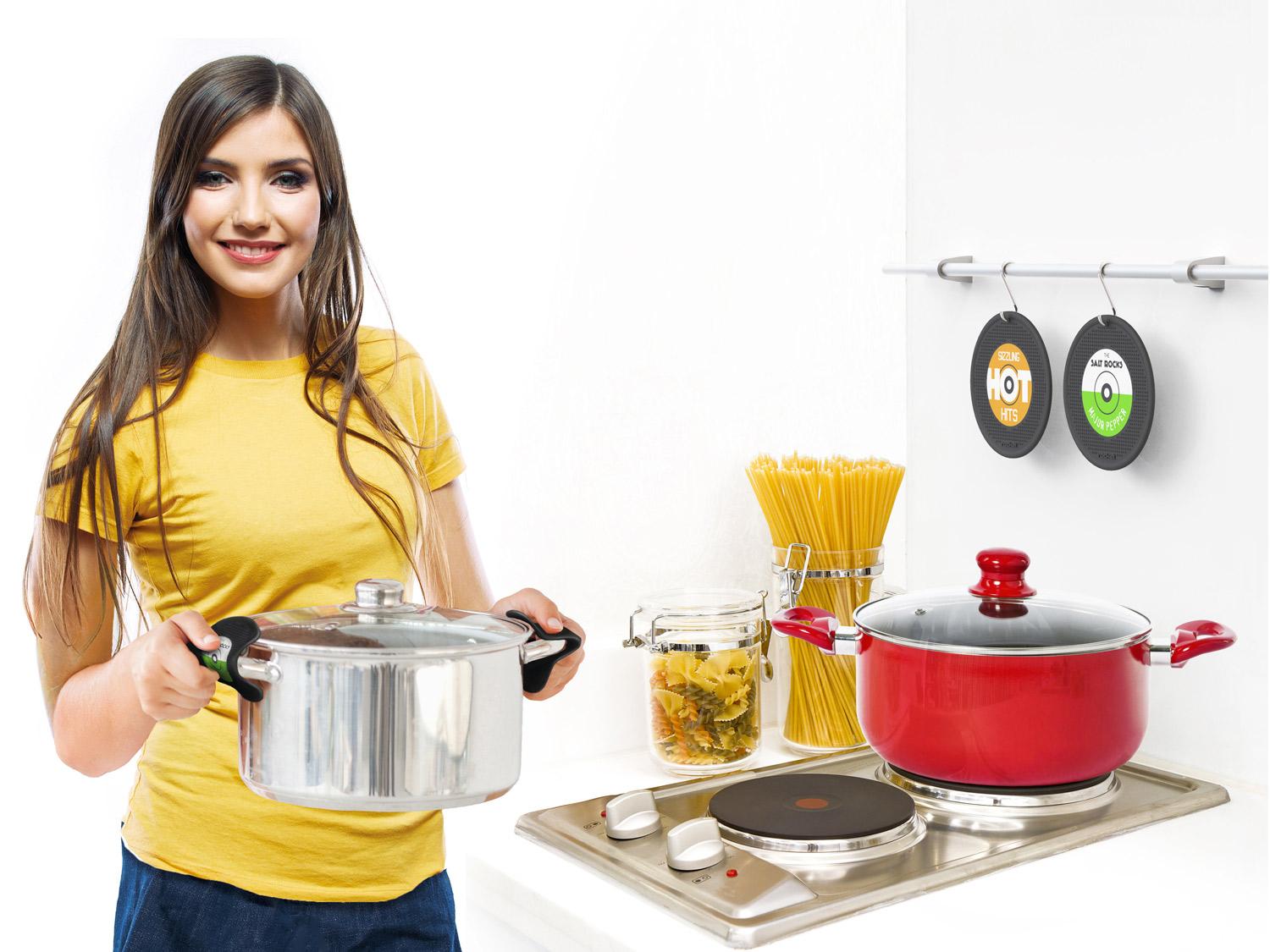 Un accessorio che non può mancare se hai bisogno di una mano (o due) con quella nuova piastra sfrigolante. Le presine in silicone Greatest Hots possono gestire il calore con stile.
