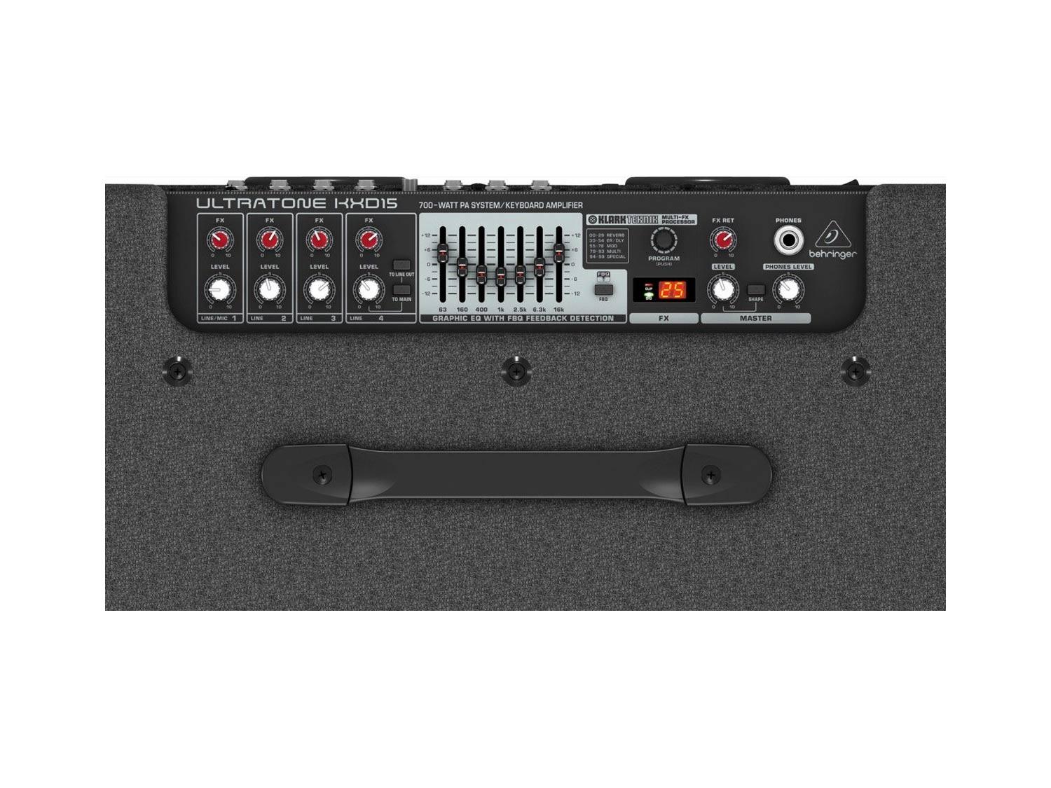 L'Ultratone KXD15 eccelle come amplificatore per tastiera e batteria straordinariamente versatile, così come da sistema PA di alta qualità a 4 canali, con un rinomato Speaker 15" Turbosound in un formato compatto e facile da trasportare. Essendo Behringer specializzata in suoni ricchi, professionali ed accurati, come ad esempio il processore studio-grade Klark Teknik Multi-FX, un vero progetto biamplificato, ed il sistema di rilevazione del Feedback FBQ, questo strumento da 600 Watt tirerà fuori il meglio dai tuoi strumenti e dalla tua voce concerto dopo concerto.
