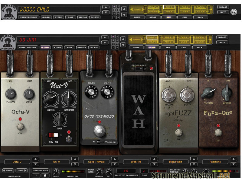 • Jimi Hendrix song presets immediately recall the entire rig used