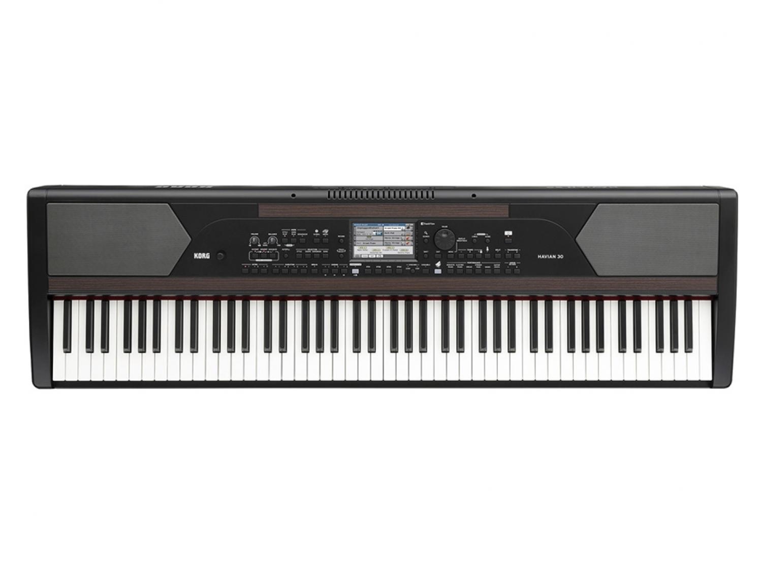 Havian 30 dispone di suoni di piano acustico a coda e verticali, piani elettrici, ed una fantastica selezione di suoni aggiuntivi, in un mobile elegante e compatto. E' uno strumento concepito e progettato per essere facile da usare ed ottenere rapidamente grandi risultati musicali, senza alcun compromesso nella qualità sonora o nelle prestazioni. In grado per questo di soddisfare anche i professionisti più esigenti. La tastiera pesata "Hammer-Action" di alta qualità e di costruzione europea, offre all'utente una risposta dinamica accurata e la sensazione di suonare un autentico pianoforte a coda. Il suono del piano realizzato in modo incredibilmente dettagliato, è in grado di soddisfare gli utenti più esigenti, mentre i suoni della sezione di accompagnamento sono acquisiti direttamente dalla serie di Arranger professionali Korg Pa, eccezionalmente rinomata a livello mondiale. Grazie all'elegante supporto opzionale, con porta pedale ed un utile gancio per le cuffie, HAVIAN 30 si integra perfettamente con ogni tipo di arredamento di interni.