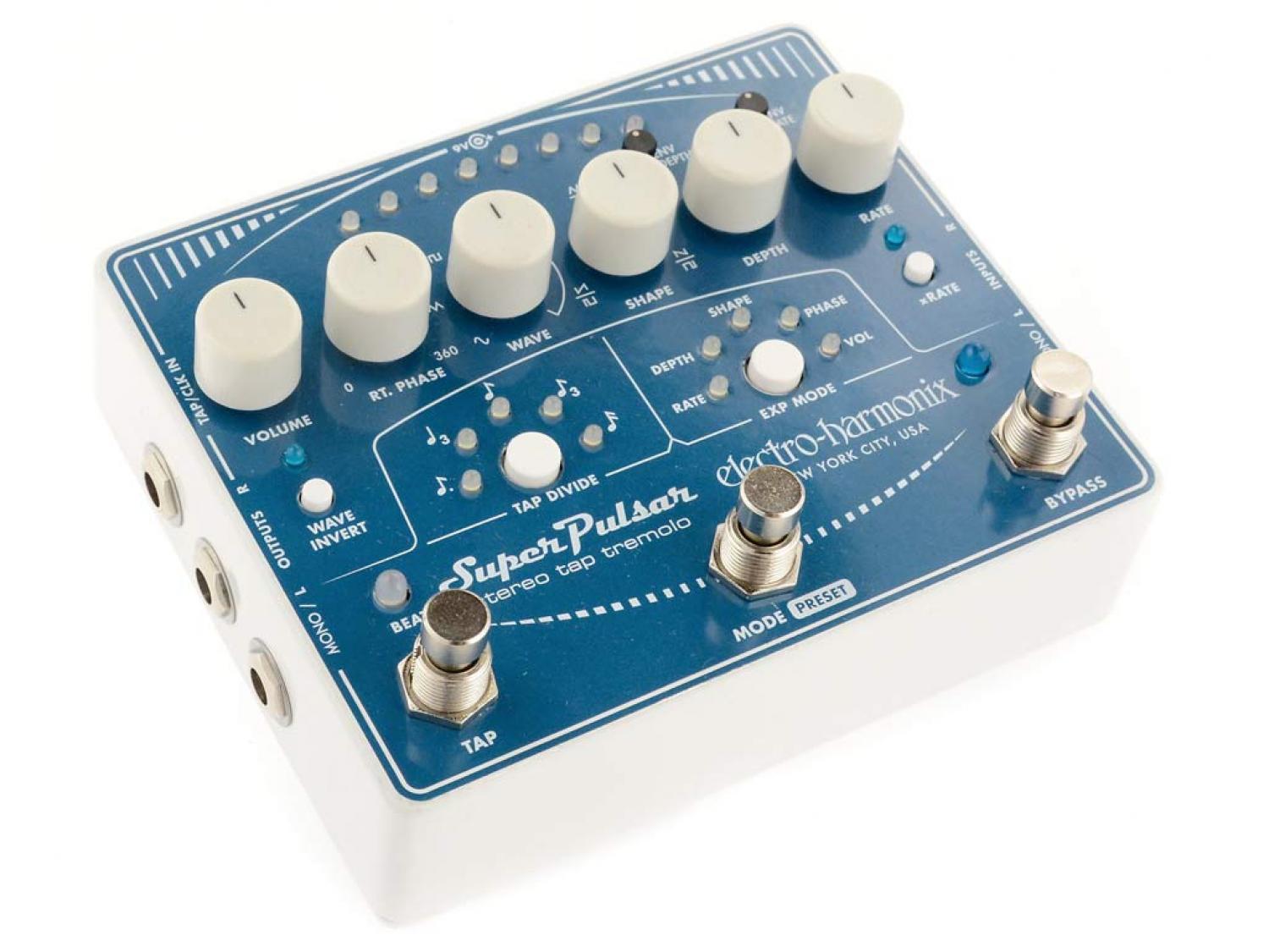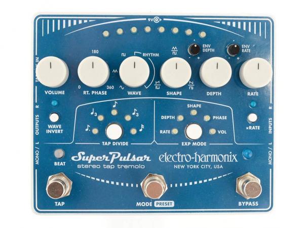 Un tremolo davvero eccellente con comandi e routing del segnale potenti. Modella la forma del tremolo con forme d'onda sinusoidali, triangolari e impulso regolabile mentre il tap tempo ed il tap divide assicurano il sincronismo. Crea i tuoi modelli ritmici e memorizzali. Salva e richiama fino a otto programmi preimpostati personalizzati. Crea magici tremoli in movimento on-the-fly con il controllo EXP su Rate, Depth, Shape, Phaseo Volume. Gli I/O permettono di scegliere il funzionamento Stereo In/Out, Mono In / Stereo Out, Stereo In / Mono Out oppure Mono In / Mono Out. La circuiteria analogica rende il suono caldo, rigoglioso che ti avvolgerà in onde di forma mutevole.