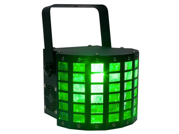 L'ADJ Mini Dekker DMX-512 è un effetto a LED che produce fasci colorati RGBW (rosso, verde, blu e bianco) da 48 lenti. Dotato di due brillanti Quad LED RGBW da 10 Watt, 7 Modalità di funzionamento, effetto Strobo.