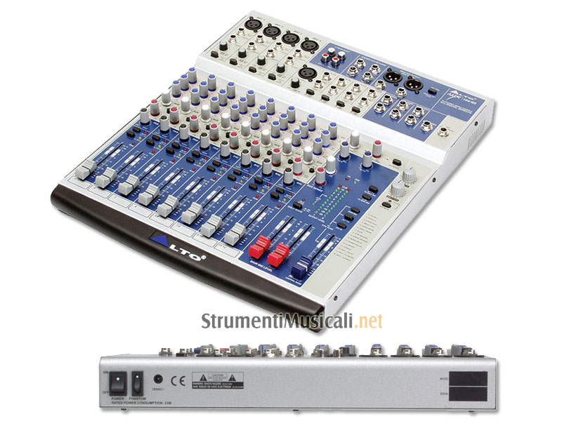 Il mixer ALTO AMX-180FX ha 4 canali d'ingresso mono (dotati di preamplificatori microfonici a bassissimo rumore ed alimentazione phantom +48V), 4 canali d'ingresso stereo, 2 ritorni Aux stereo ed un ingresso 2 TK IN. Quindi in totale avete 18 canali d'ingresso nel vostro AMX-180FX. E' stato progettato specificatamente per utilizzazioni professionali.