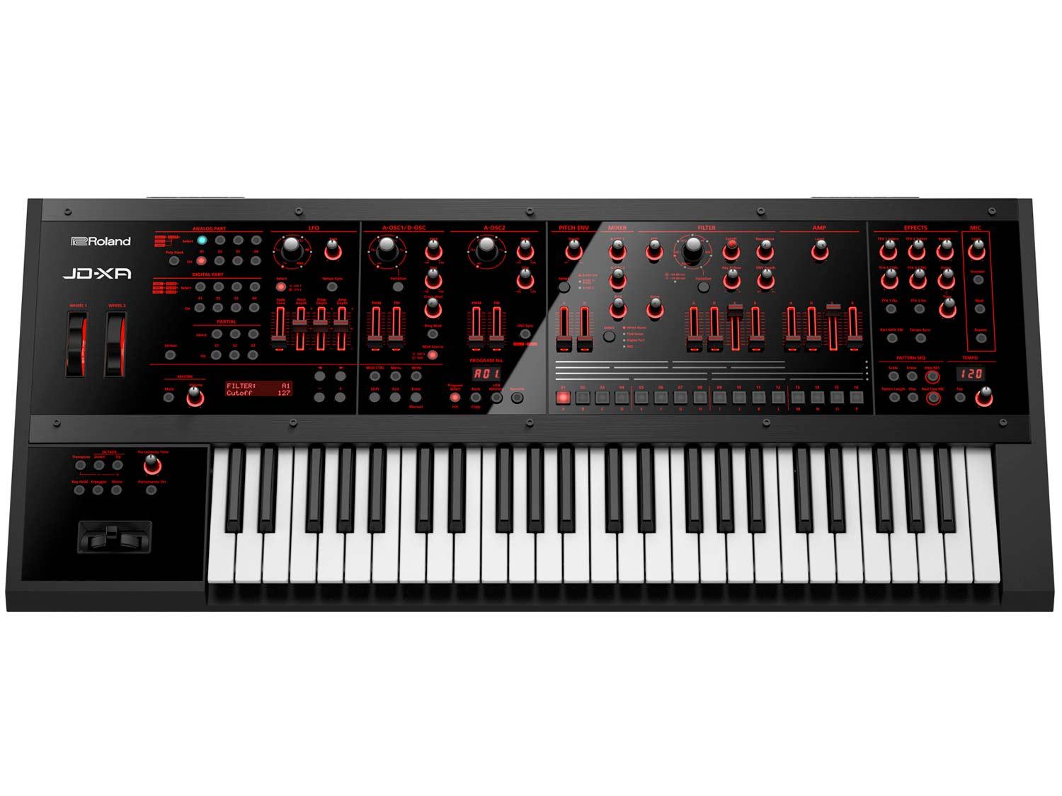 Miscelare analogico e digitale non è mai stato così facile. Il fratello maggiore di JD-Xi è pronto a far battere il cuore di chi ama l'analogico e di chi apprezza la flessibilità del digitale. JD-XA è un sintetizzatore con due motori di sintesi: uno analogico con DCO e VCF e uno digitale di tipo SuperNatural. Il pannello frontale è pieno di controlli, come i suoi predecessori JD/JP, con la particolarità di essere retroilluminati, per un effetto scenico notevole. Completano la dotazione tastiera ...