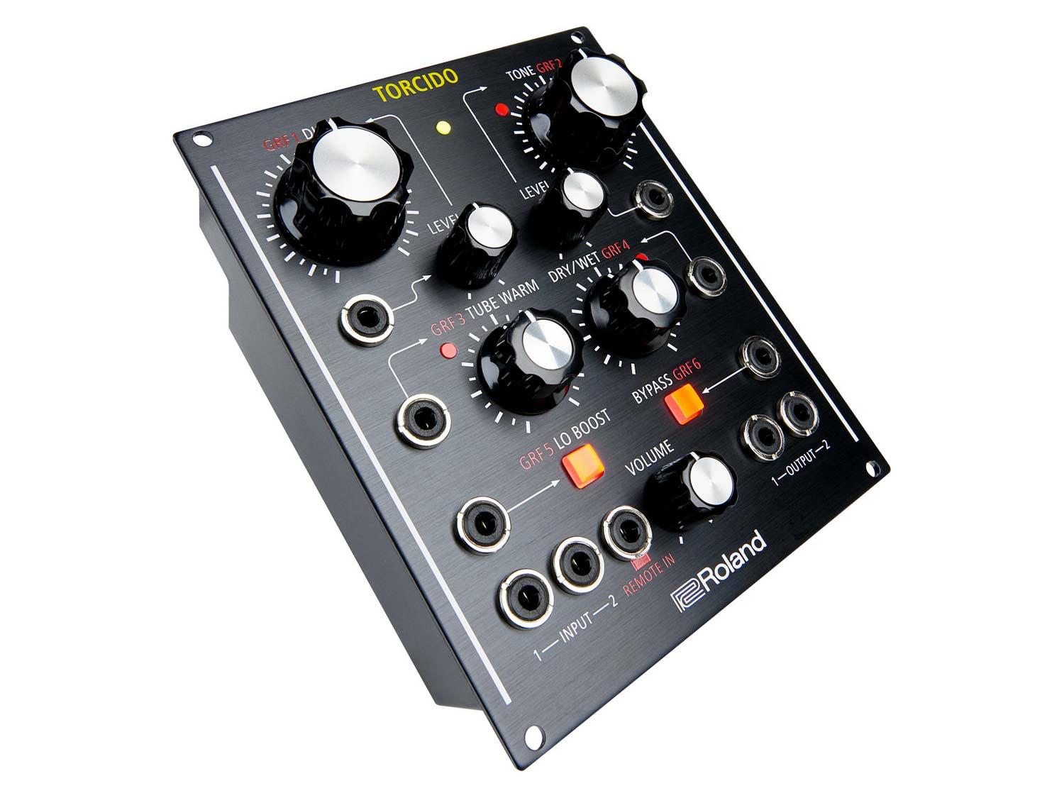 Torcido è un versatile effetto modulare che combina la classica distorsione Roland con un controllo ed una flessibilità mai viste prima. Utilizzabile sia come tabletop che come modulo Eurorack, e con diversi input CV/Gate, questa compatta unita 21 HP ha un vastissimo range di possibili utilizzi, dalla produzione in studio al live. Torcido è perfetto non solo per gli utilizzatori di synth, ma anche per i tastieristi, chitarristi, DJ e chiunque creatività e voglia di trovare nuovi suoni. Made in Japan, Torcido ha controlli ampi e ultra definiti (fino a 16 milioni di diversi valori), ed è inoltre completamente riprogrammabile via computer, smartphone o tablet.