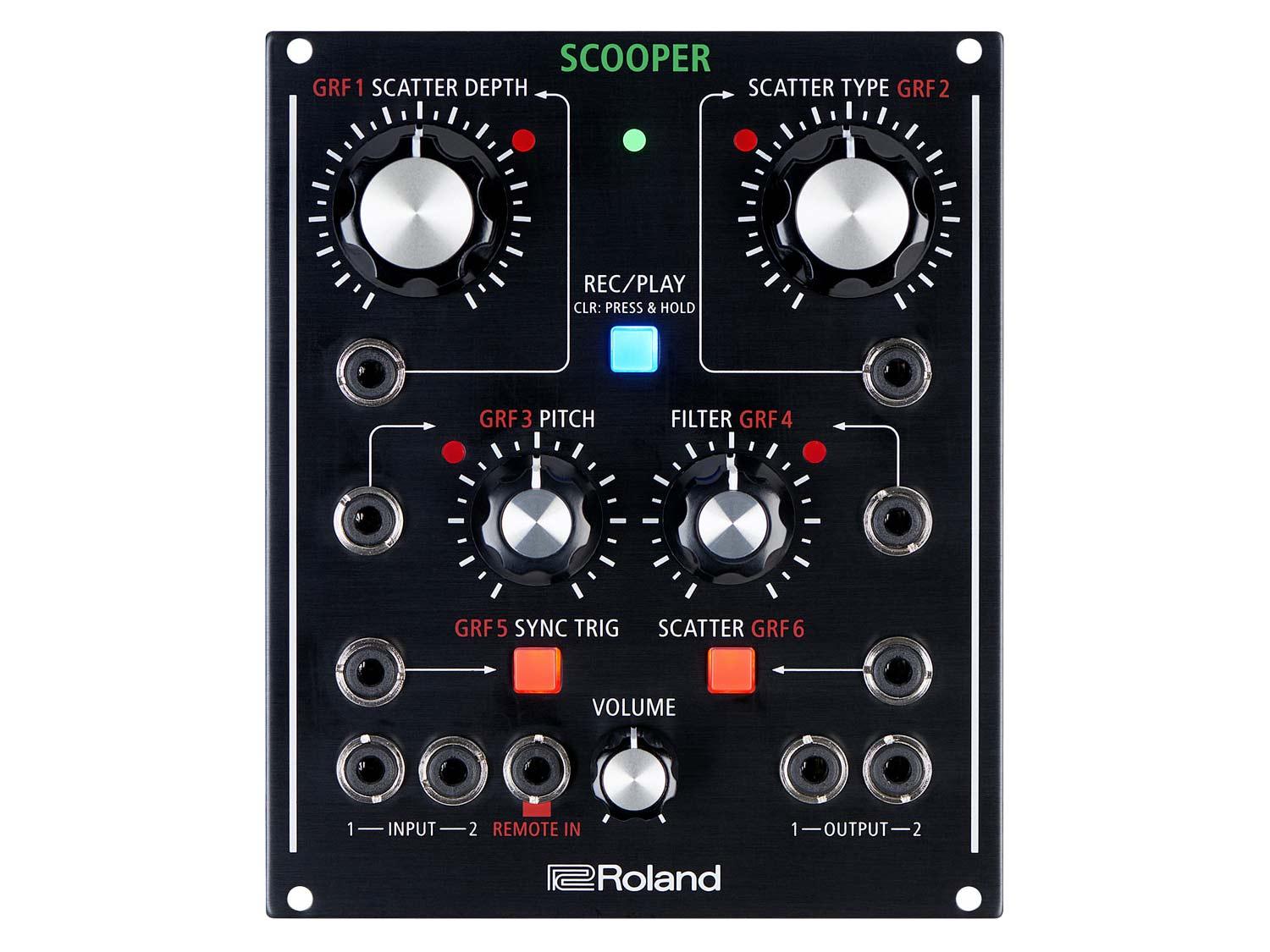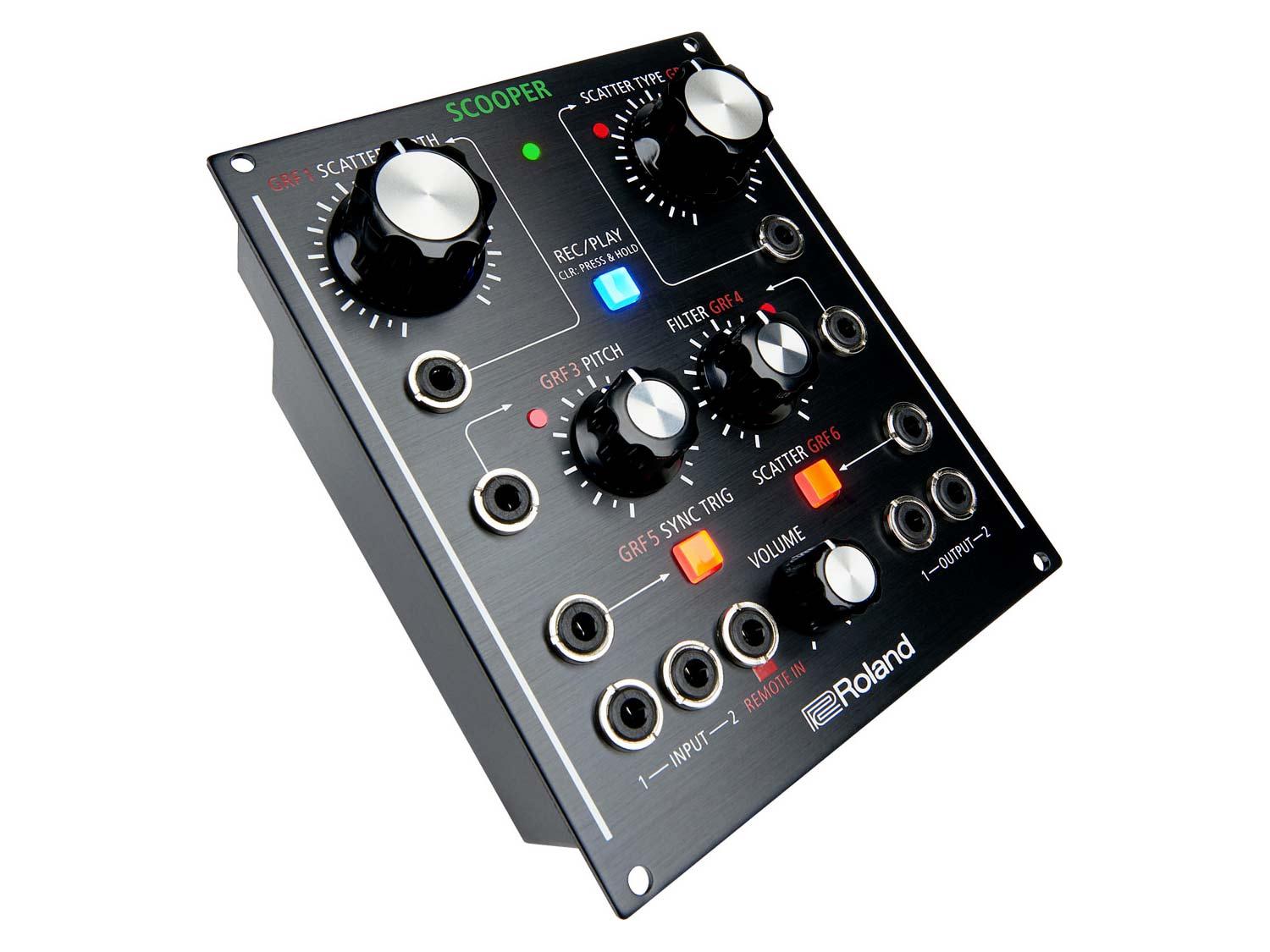 Scooper è un effetto modulare unico, che combina un loop recorder single-pass ed uno scatter ad un controllo ed una flessibilità mai visti prima. Utilizzabile sia come "tabletop" che come modulo Eurorack, e con diversi input CV/Gate, questa compatta unita 21 HP ha un vastissimo range di possibili utilizzi, dalla produzione in studio al live. E' perfetto non solo per gli utilizzatori di synth, ma anche per i tastieristi, chitarristi, DJ e chiunque abbia voglia di trovare nuovi suoni. Made in Japan, Scooper ha controlli ampi e ultra definiti (fino a 16 milioni di diversi valori), ed è inoltre completamente riprogrammabile via computer, smartphone o tablet.