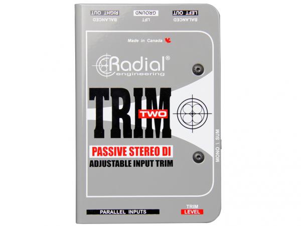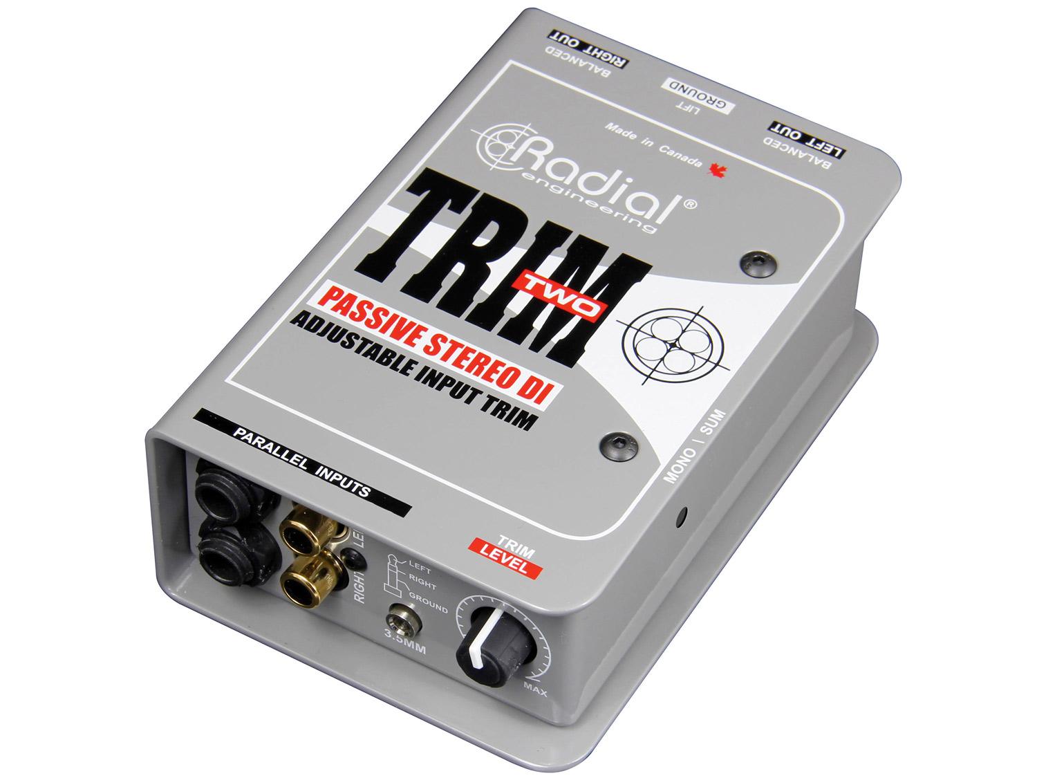 Trim-Two, un isolatore stereo passivo progettato per semplificare l'utilizzo del computer portatile per tastieristi, DJ e presentatori AV attraverso un controllo del volume ad un accesso rapido per regolazioni immediate durante le performance live. Il progetto consiste in due jack da 1/4", RCA destro e sinistro e un ingresso stereo da 3,5mm collegati fra loro in parallelo. Un solo dispositivo collega la sorgente al Trim-Two e poi alle uscite maschio XLR del sistema PA. Trim-Two è completamente passivo e non richiede alimentazione. Utilizza il controllo volume per regolare il livello prevenendo possibili distorsioni.