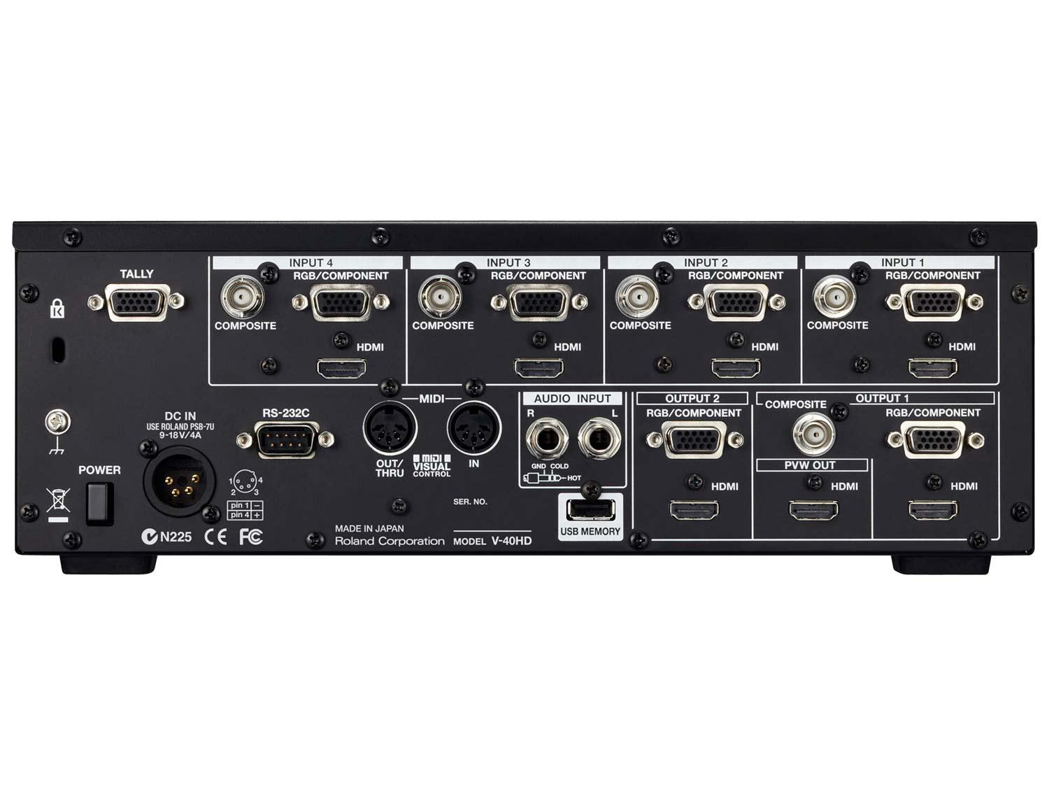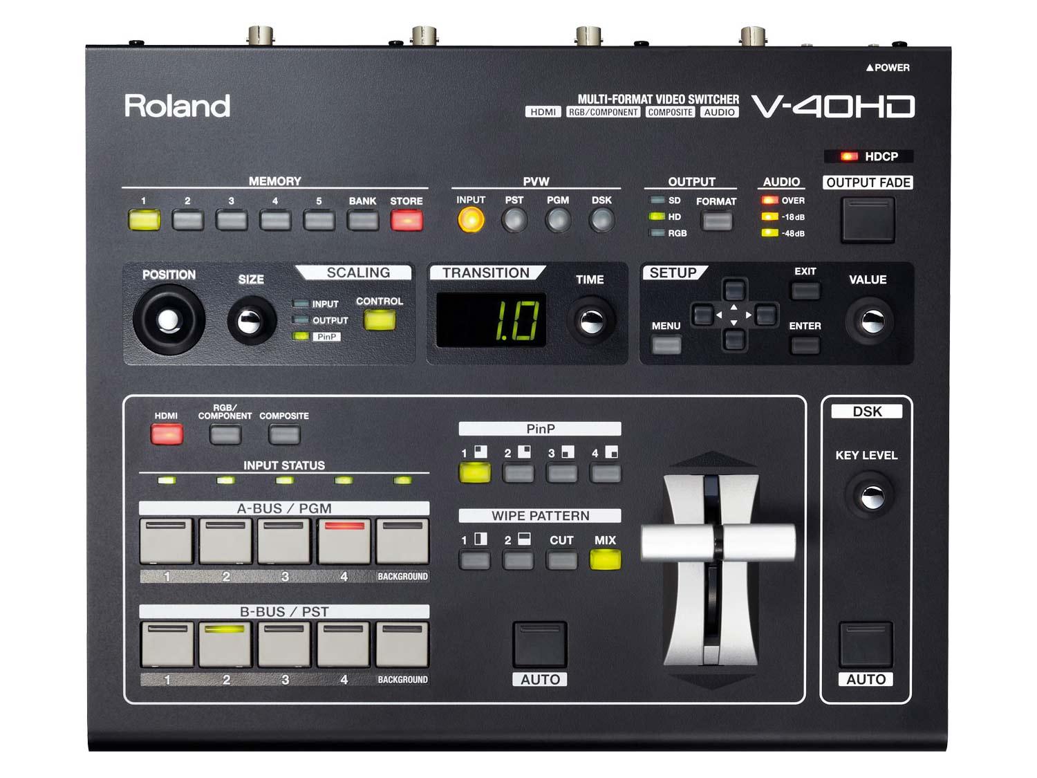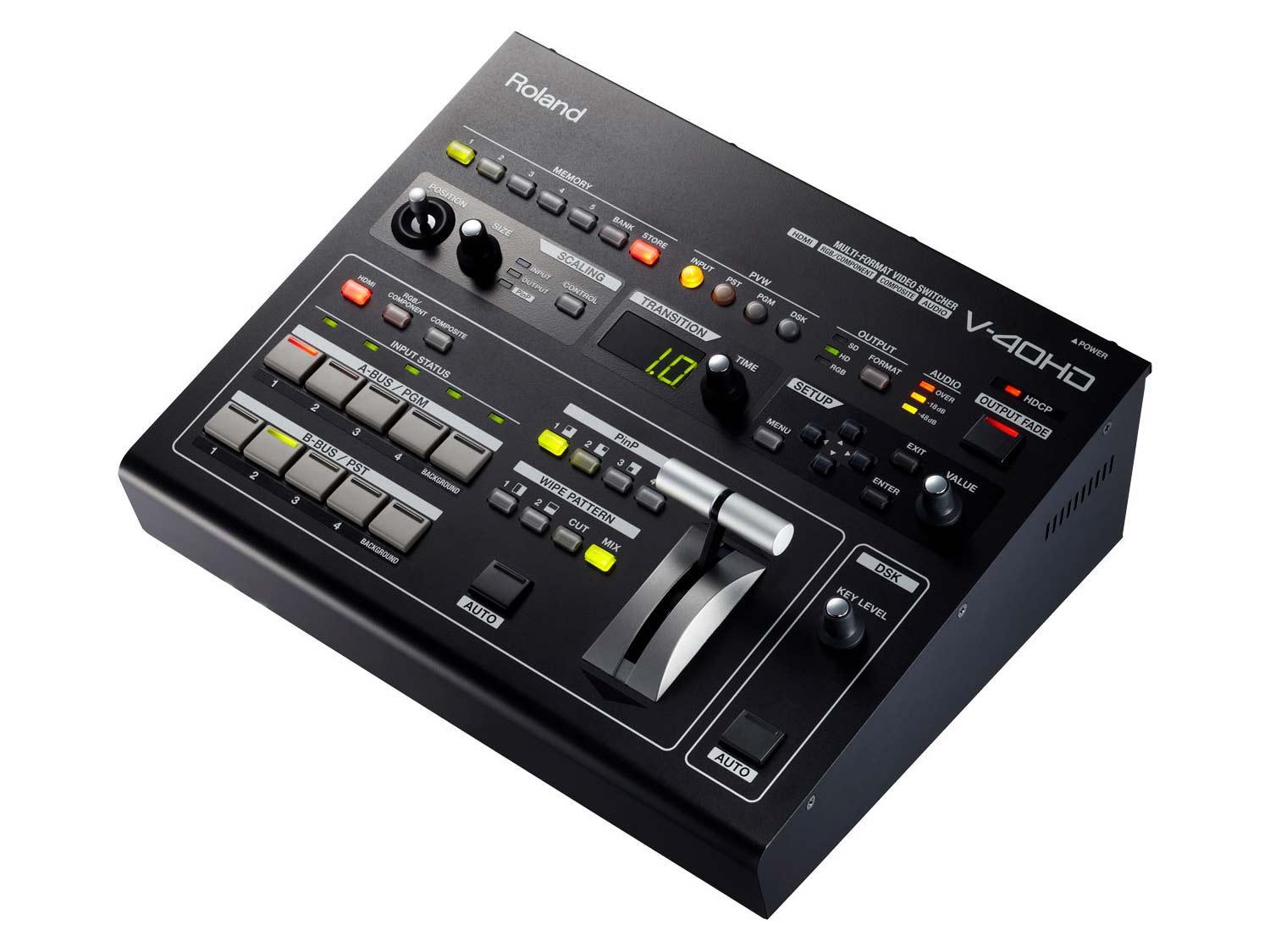 Il Roland V-40HD Multi-Format Live Video Switcher è una gradita aggiunta alla potente gamma di modelli V-1600HD e V-800HD. Il V-40HD Live Video Switcher è l'ideale per qualsiasi evento in diretta o installazione che richiede la libertà di collegare sorgenti diverse, siano esse in formato digitale o analogico, computer o video. E' particolarmente adatto per supportare configurazioni che utilizzino le popolari telecamere HDMI e computer.