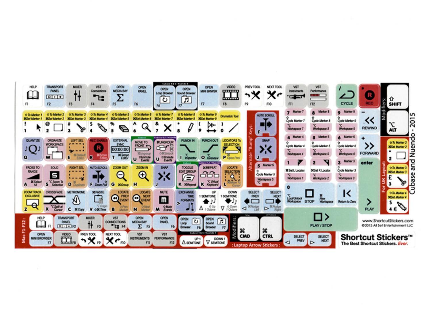 Adesivi con tasti di scelta rapida compatibili con tutte le versioni Steinberg Cubase e con Nuendo V4 e successivi. Gli adesivi per tastiera Steinberg sono progettati per migliorare la tua produttività e per goderti il lavoro durante tutto il percorso.