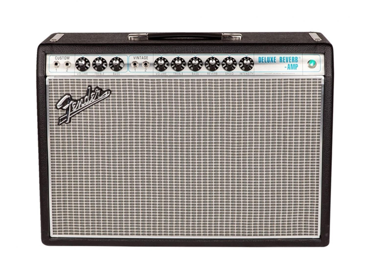 Il 1968 fu un anno di transizione per gli amplificatori Fender, con una timbrica ancora tipicamente Fender, ma un design assolutamente nuovo. Con un pannello frontale argento e turchese e un'elegante finitura con tela a griglia nota come "drip edge" (per via del profilo in alluminio tra il pannello e la griglia anteriore), il Deluxe Reverb ha subito un completo rinnovamento del design, pur rimanendo l'amplificatore ideale per la registrazione e i concerti. Piccolo, leggero e di media potenza, produceva un timbro valvolare energico, con riverbero ed effetti di vibrato Fender ineguagliabili. Da allora, il Deluxe Reverb è l'amplificatore di riferimento per il suono Fender classico, adottato da moltissimi chitarristi. Il Custom Deluxe Reverb '68 è un omaggio alla classicità del design, del suono e delle prestazioni degli amplificatori Fender dei tardi anni '60. Con una modifica speciale, entrambi i canali vantano riverbero e tremolo ed il canale Custom presenta un controllo di tono Bassman modificato che conferisce una maggiore flessibilità timbrica con i pedali. L'amplificatore presenta inoltre un attacco del gain più rapido ed una riduzione del feedback negativo per una maggiore sensibilità al tocco. Il cono da 12" Celestion G12V-70 del '68 Custom Deluxe Reverb conferisce inoltre un piglio più spiccatamente rock'n'roll.