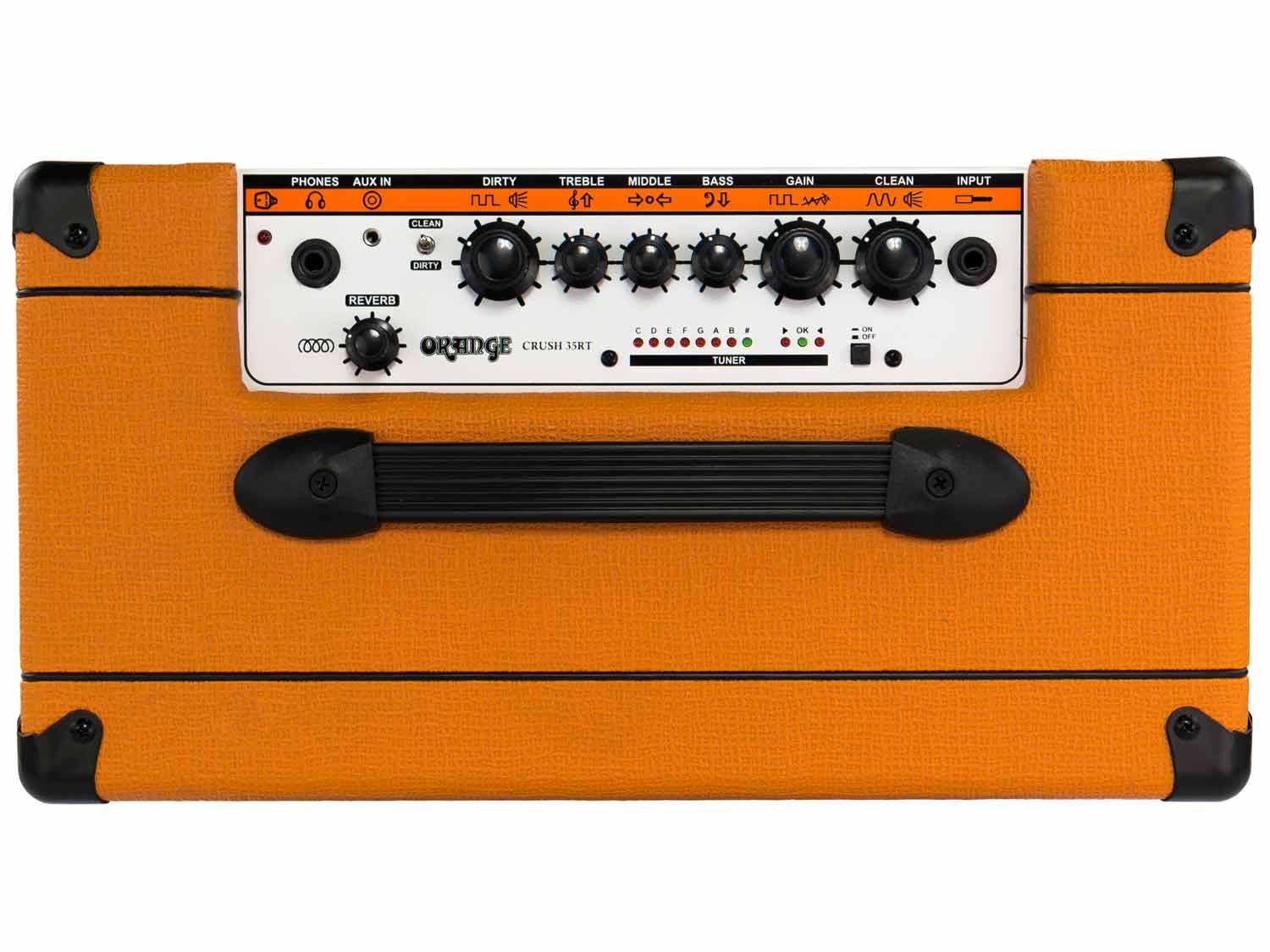 Il combo Orange 35RT Crush è il modello più grande e più ricco di funzionalità nella gamma Crush. Il preamplificatore a due canali, high-gain, abbinato ad uno stadio di uscita più nerboruto da 35 Watt ed uno speake 10" Voice of The World produce risultati sorprendenti, offrendo ancora maggiore punch, presenza e volume. Oltre al riverbero e ad un accordatore cromatico integrato, il 35RT Crush dispone anche Aux In per riprodurre basi musicali e l'uscita cuffie con CabSim. Per coronare il tutto, il 35RT Crush è completo di un loop effetti trasparenti interamente buffered per ottenere veramente il massimo dal vostro setup di effetti a pedale. Con funzioni come queste e più che sufficiente grinta e attitudine per la sala prove, questo combo va ben al di là di un amplificatore tradizionale.