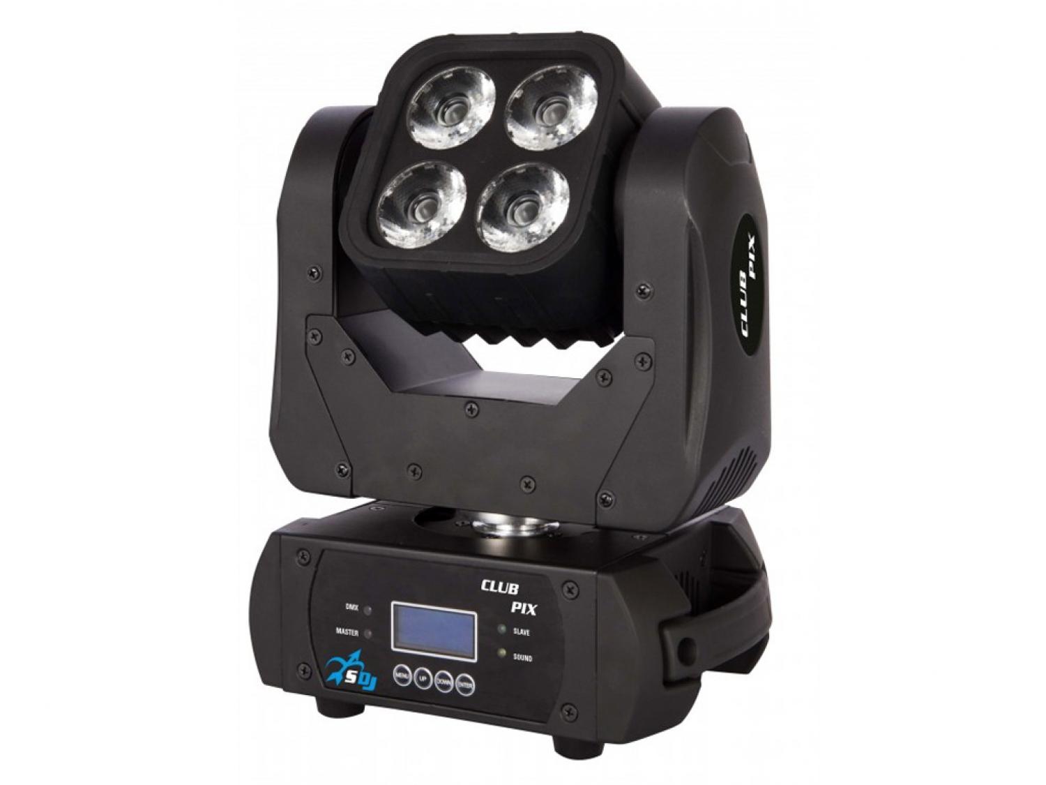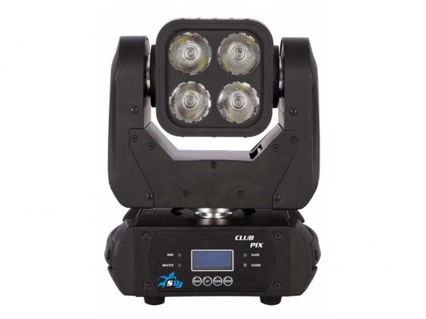 La serie CLUB è stata ideata ascoltando le esigenze degli addetti ai lavori nell'intrattenimento indoor ed outdoor. I valori vincenti di questa nuova linea sono l'efficienza luminosa, la compattezza e le funzionalità, tre valori fondamentali nel mercato odierno. Club Pix completa la serie aggiungendo in un corpo unico due funzionalità importanti e richiestissime: funzione Wash, gestita da 4 sorgenti LED ad alta potenza da 10W con tecnologia full color RGBW e angolo di proiezione di 5° che garantisce la massima resa luminosa ed un effetto beam definito; funzione Pixel con sorgenti controllabili separatamente che formano una matrice 2x2 pixel di grande effetto. Grazie all'utilizzo di un sistema d'isolamento ottico DC (dark cover) anti riflessione si garantisce un effetto pixel definito senza nessuna riflessione interna che interferisca nell'effetto luminoso. Per completare le prestazioni e per dare un valore aggiunto unico, è stato inserita una nuova tecnologia di movimento della testa senza limiti o vincoli meccanici: un movimento Pan&Tilt infinito ad alta velocità, che regala all'utente infinite possibilità di programmazione.