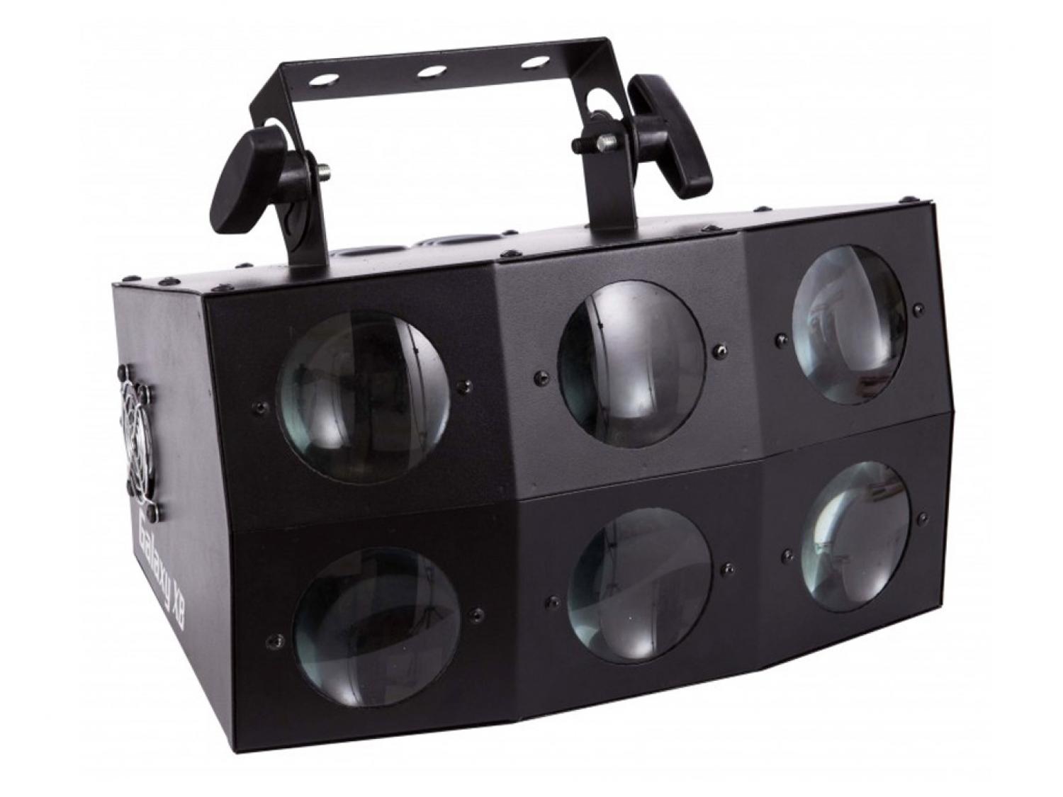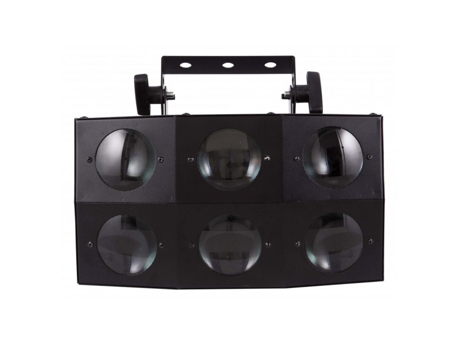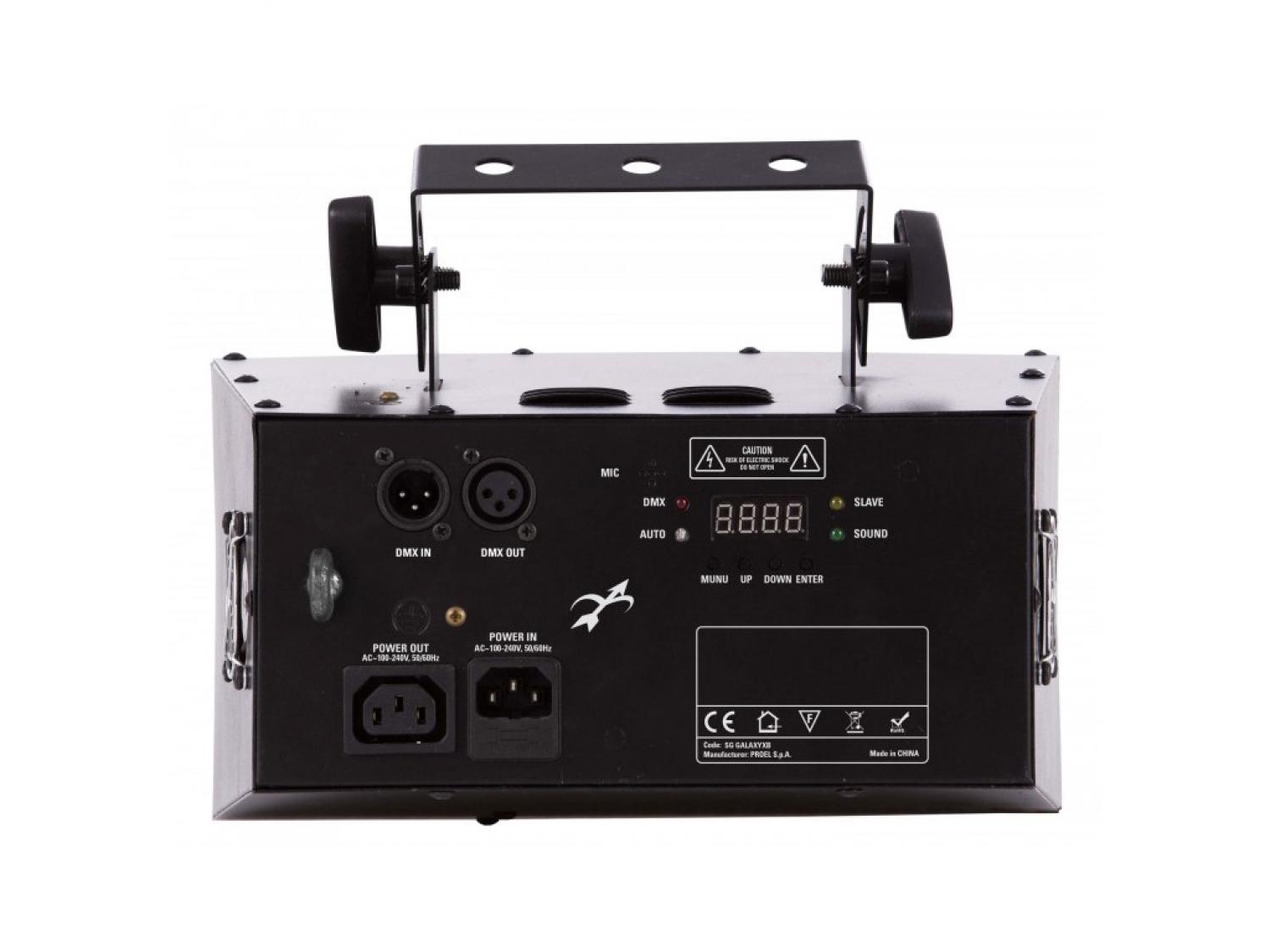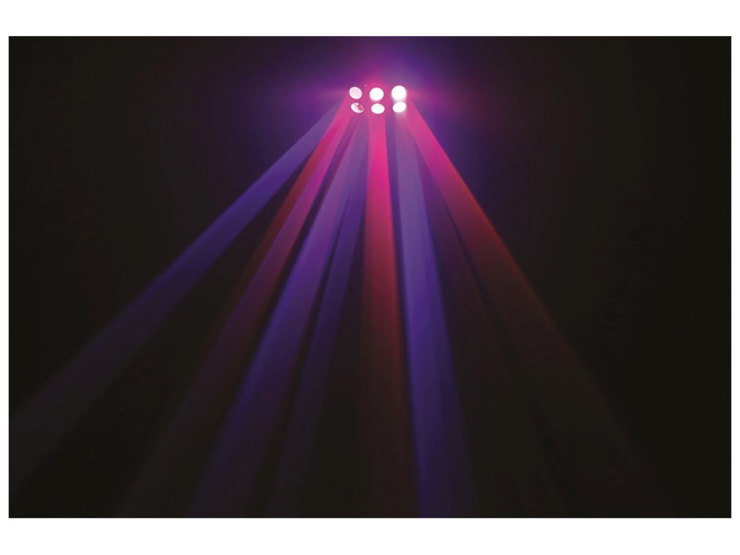 Nella linea GALAXY non poteva mancare quest'effetto, dotato di ben 6 uscite Beam studiate per generare fasci lineari cilindrici e direttivi. Grazie alla sorgente LED full color i raggi beam possono ottenere qualsiasi variante di colore e grazie alle numerose macro gestibili tramite il controllo DMX o in modalità sound, selezionabile e regolabile direttamente dal proiettore, si possono ottenere effetti visivi in aria perfetti per l'intrattenimento indoor.