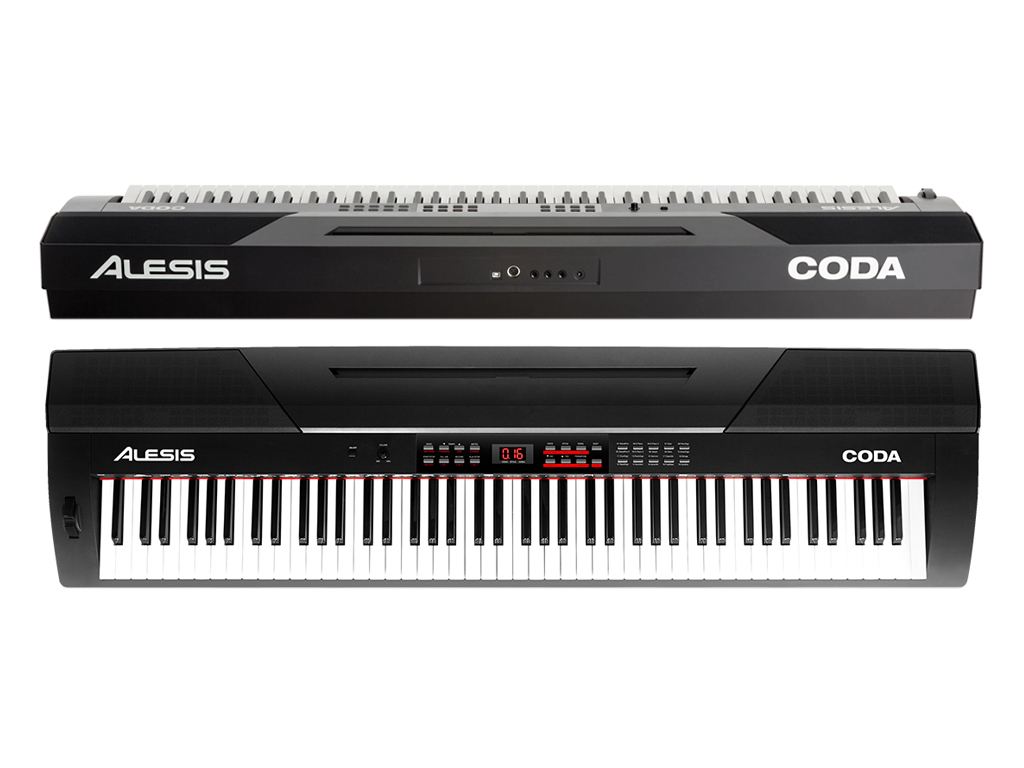 Alesis Coda e Alesis Coda Pro sono pianoforti digitali con tastiera ad 88 tasti, che si differenziano in quanto nel secondo è disponibile una tastiera pesata con simulazione del martelletto. Entrambi i modelli sono dotati di 20 preset di suoni che includono timbriche di Grand Piano, Electric Piano, Drawbar Organ, ecc, programmate dai sound designer SoniVox e Air Music Technology, nonché di 50 stili d'accompagnamento che coprono un ampio spettro di generi: Slow Rock, Vienna Waltz, Jazz Pub, etc. Alesis Coda e Coda Pro sono datati di funzioni split e layer, rispettivamente necessarie per suonare contemporaneamente due differenti preset da due sezioni distinte della tastiera, oppure in contemporanea (layer). Mediante le porte USB e MIDI DIN Out l'utente potrà utilizzare questi pianoforti come master keyboard per suonare e controllare gli strumenti virtuali installati su computer PC, o Mac. Disponibili inoltre un metronomo ed effetti di rivebero, delay, eq e chorus. Incluso un pedale sustain. La connettività audio è garantita da un'uscita stereo su connettori Jack da ¼" e da due uscite cuffie molto utili per chi effettua lezioni di piano. Un ingresso stereo su connettori jack da 1/4" consente di collegare sorgenti esterne da usare come base per l'allenamento, la didattica o le tue performance. Alesis Coda Keyboard Stand è lo stand opzionale acquistabile separatamente come accessorio.