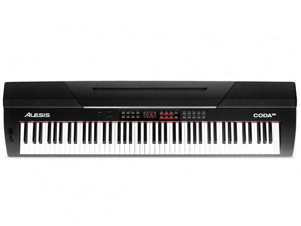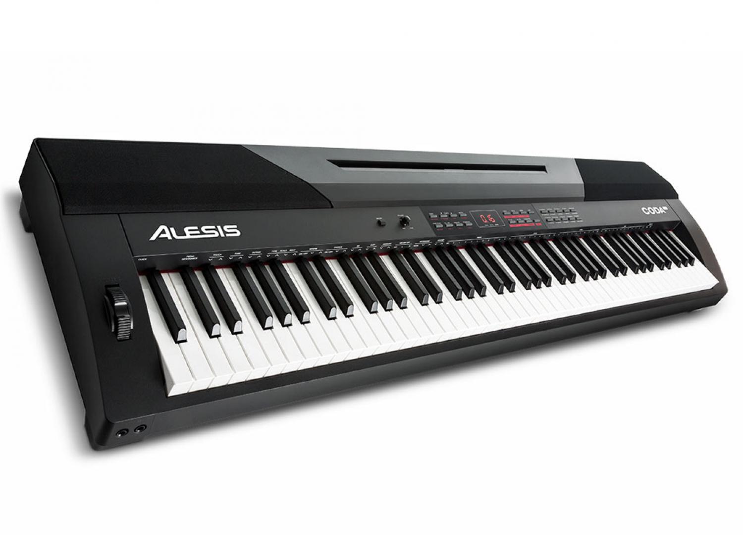 Alesis Coda Pro è un pianoforte digitale con tastiera ad 88 tasti pesati con simulazione del martelletto. Coda Pro è dotata di 20 preset di suoni che includono timbriche di Grand Piano, Electric Piano, Drawbar Organ, etc, programmate dai sound designer SoniVox e di Air Music Technology, nonché di 50 stili d'accompagnamento che coprono un ampio spettro di generi: Slow Rock, Vienna Waltz, Jazz Pub, etc. Alesis Coda Pro è datato di funzioni split e layer, rispettivamente necessarie per suonare contemporaneamente due differenti preset da due sezioni distinte della tastiera, oppure in contemporanea (layer). Mediante le porte USB e MIDI DIN Out l'utente può utilizzare questi pianoforti come master keyboard per suonare e controllare gli strumenti virtuali installati su computer PC, o Mac. Disponibili inoltre un metronomo ed effetti Rivebero, Delay, EQ e Chorus. Incluso un pedale sustain. La connettività audio è garantita da un'uscita stereo su connettori jack da 1/4" e da due uscite cuffie molto utili per chi effettua lezioni di piano. Un ingresso stereo su connettori jack da 1/4" consente di collegare sorgenti esterne da usare come base per l'allenamento, la didattica o le tue performance. Alesis Coda Keyboard Stand è lo stand opzionale acquistabile a parte come accessorio.